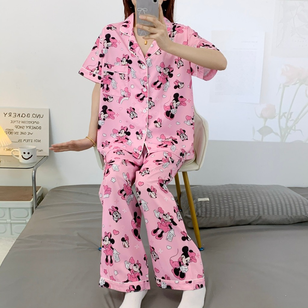 🔥พร้อมส่ง🔥 ชุดนอน ผ้าไหมอิตาลี่ เเขนสั้น-ขายาว ผ้าดี มีหลายลายให้เลือก ฟรีไซส์ SL-2