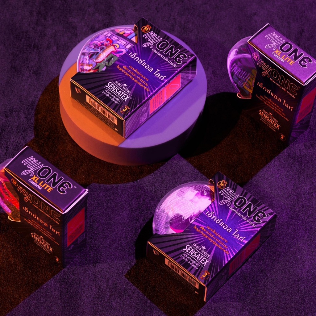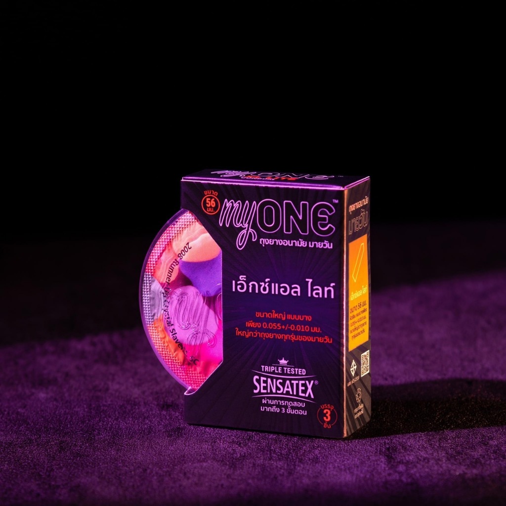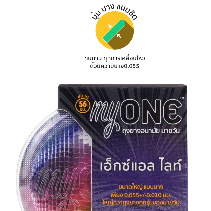 myONE XL Lite condom ถุงยางอนามัย มายวัน เอ็กซ์แอล ไลท์ ผิวเรียบ แบบบาง ขนาด 56 มม. 1 กล่องบรรจุ 3 ชิ้น