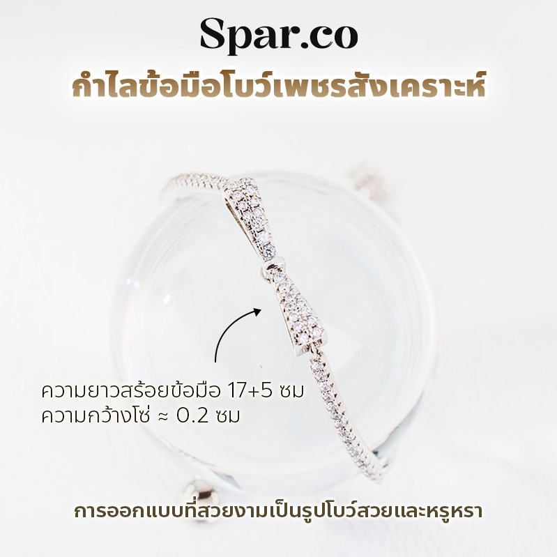 Spar.co กำไลข้อมือประดับโบว์เพชรสังเคราะห์ผ่านกระบวนการเคลือบทอง 18K สร้อยกําไลขาว SP-AAD1121