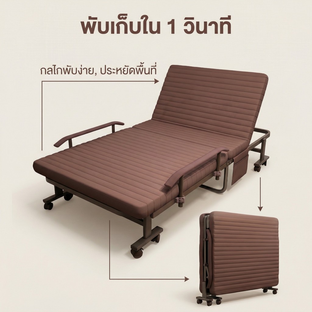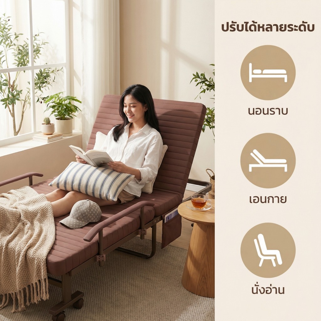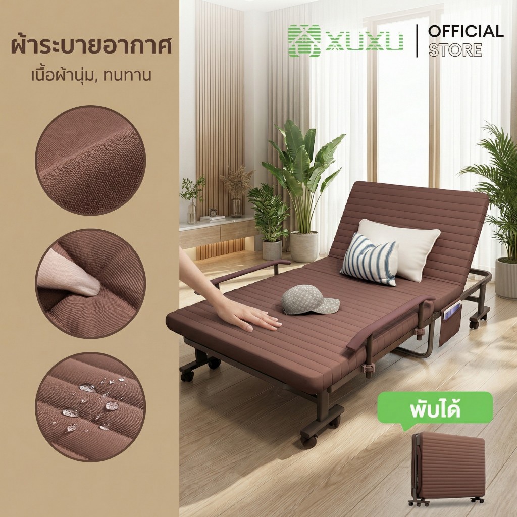XUXU เตียงนอนพับ 3.5/4 ฟุต เตียงนอนพับได้หลากหลายฟังก์ชั่น เตียงผู้สูงอายุ สามารถทำเป็นโซโฟนั่งได้