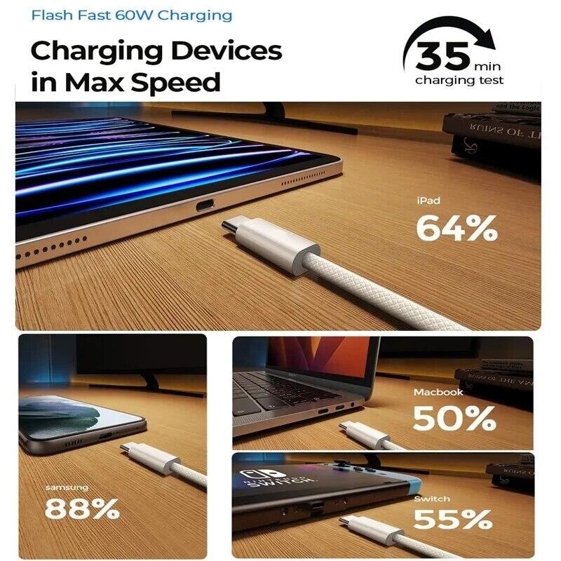 สายชาร์จเร็ว PD Type C เป็น Type C 60W 1 เมตร 2 เมตร คุณภาพสูง สําหรับ Phone 15 15Plus 15Pro Max
