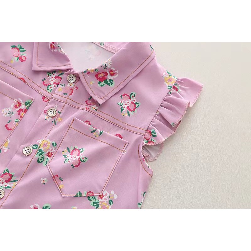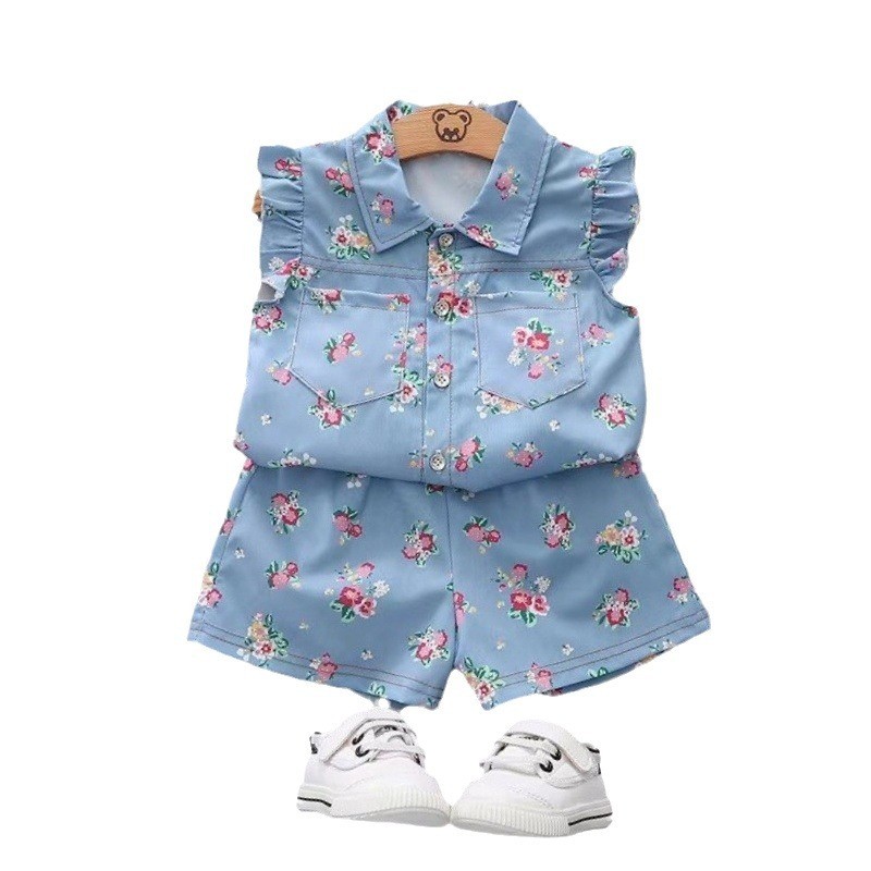 ใหม่แฟชั่นเกาหลีดอกไม้พิมพ์ชุดฤดูร้อน2ชิ้นชุดเสื้อแขนสั้น+กางเกงขาสั้นวอร์มสําหรับเด็กผู้หญิงเสื้อผ้า
