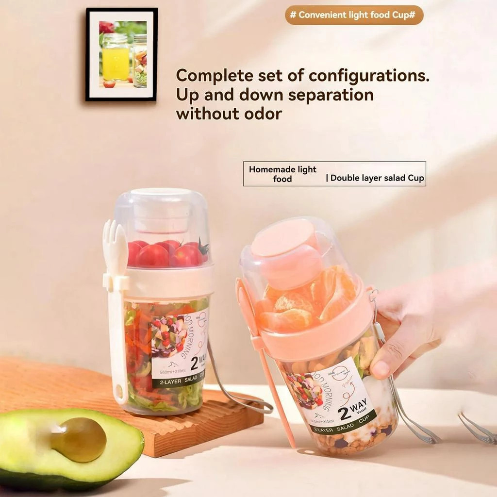 [ ส่งด่วน ส่งฟรี ] ถ้วยใส่อาหารเช้าพกพา ถ้วย Overnight Oat ถ้วยข้าวโอ๊ต ถ้วยกรีกโยเกิร์ต แยก 2 ชั้น แก้วพกพา ใส่สลัด