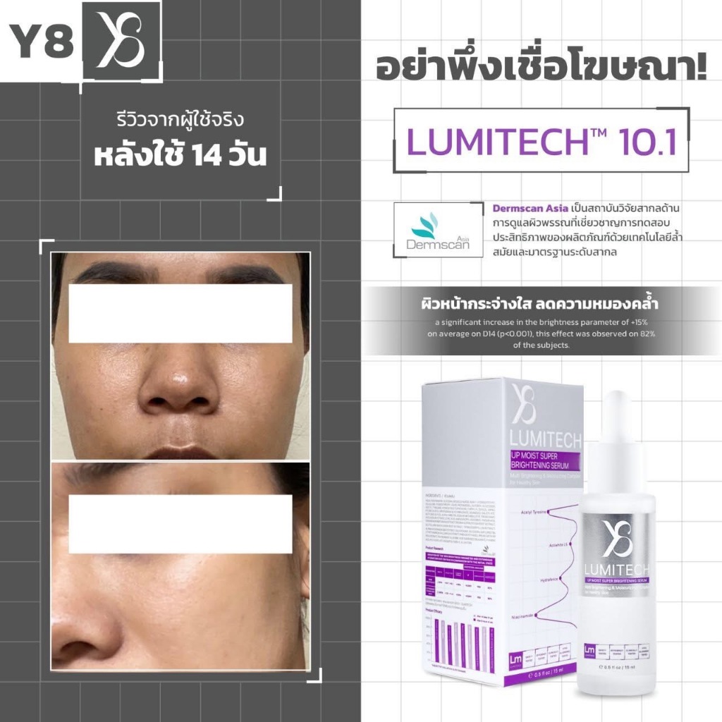 (แบรนด์Y8) Lumitech10.1 ลูมิเทค เซรั่มงานวิจัย 15ml. ดูแลผิวเน้นเรื่องขาวใส แก้ฝ้ากระ