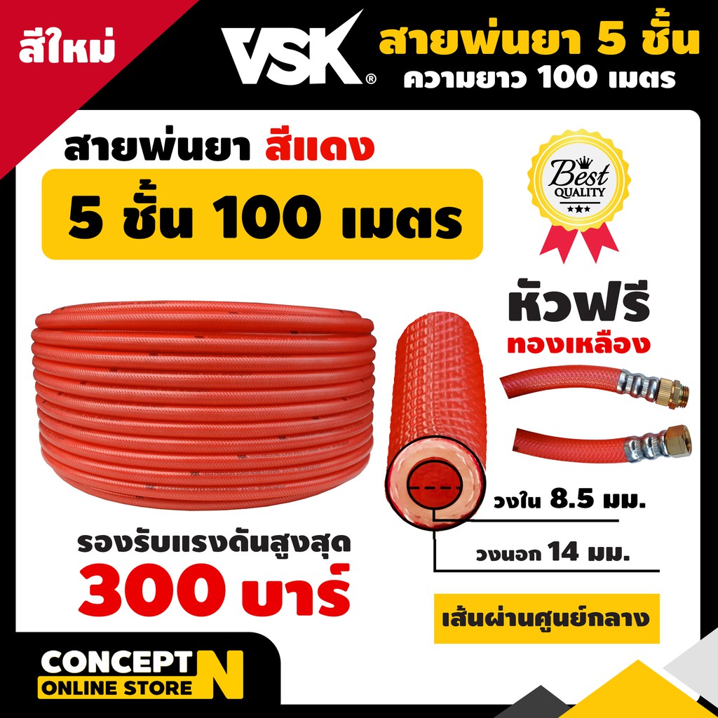 สายพ่นยาหนาพิเศษ 5 ชั้น หัวฟรี ยาว 100 เมตรเต็ม VSK ประกัน 1 เดือน สินค้ามาตรฐาน Concept N