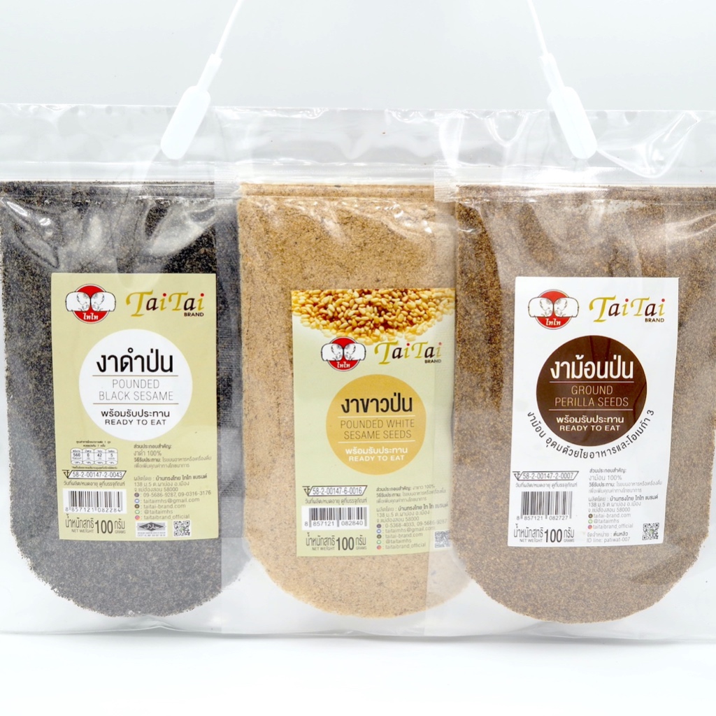 เซตรวมงาป่น บรรจุซองละ 100กรัม (ตราไทไทแบรนด์) TaiTai Assorted Pounded Seseme Seeds (งาดำป่น,งาขาวป่น,งาม้อนป่น)