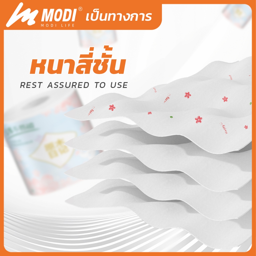 MODIกระดาษชำระ ทิชชู่หนา4ชั้น 100*138mm ปลอดภัยและเป็นมิตรกับผิว ไม่ระคายเคือง เยื่อไม้บริสุทธิ์100%