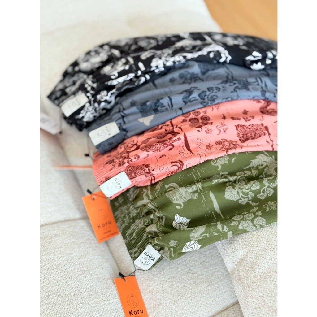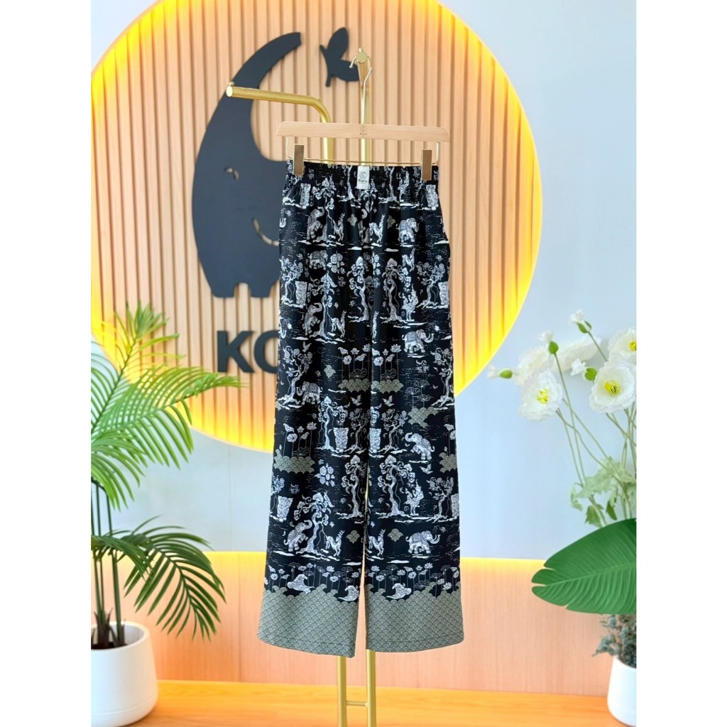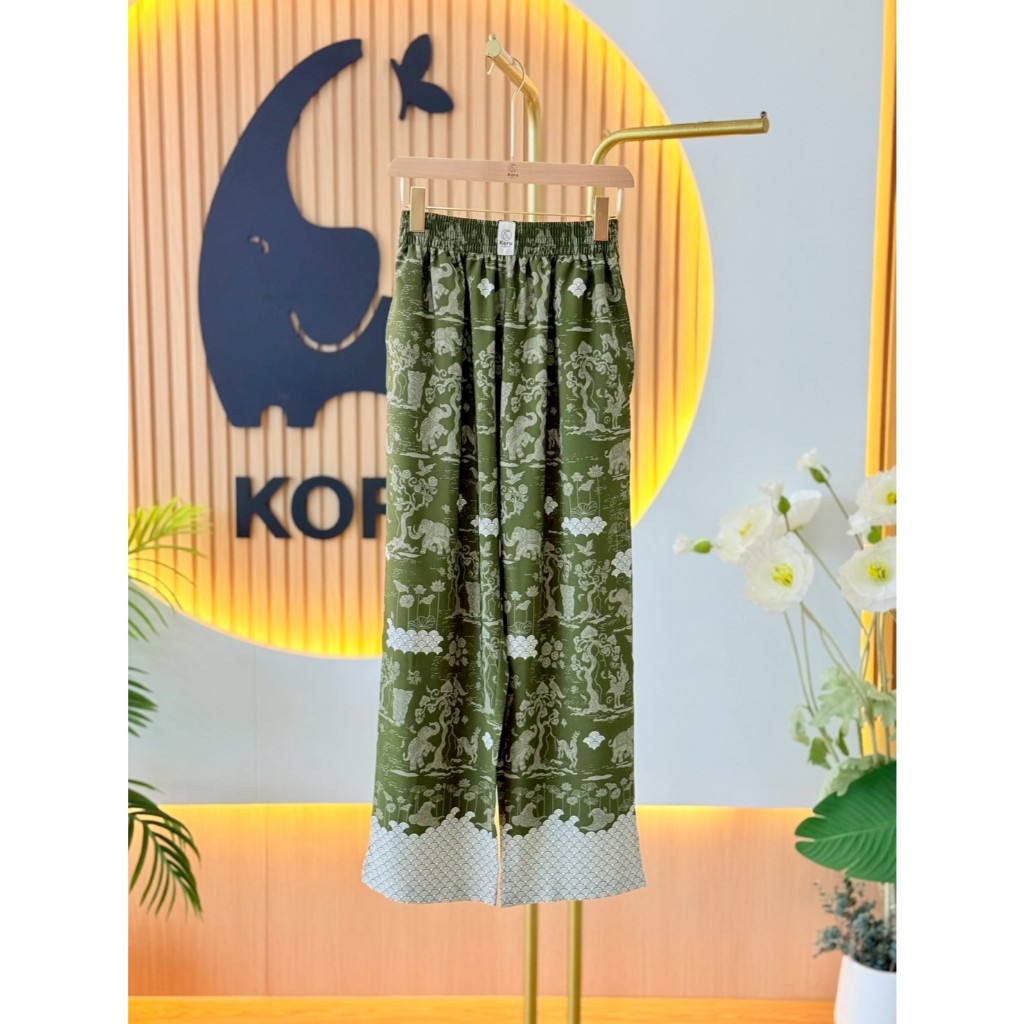 KORU กางเกงขากระบอกเล็ก ลายช้างหิมพานต์