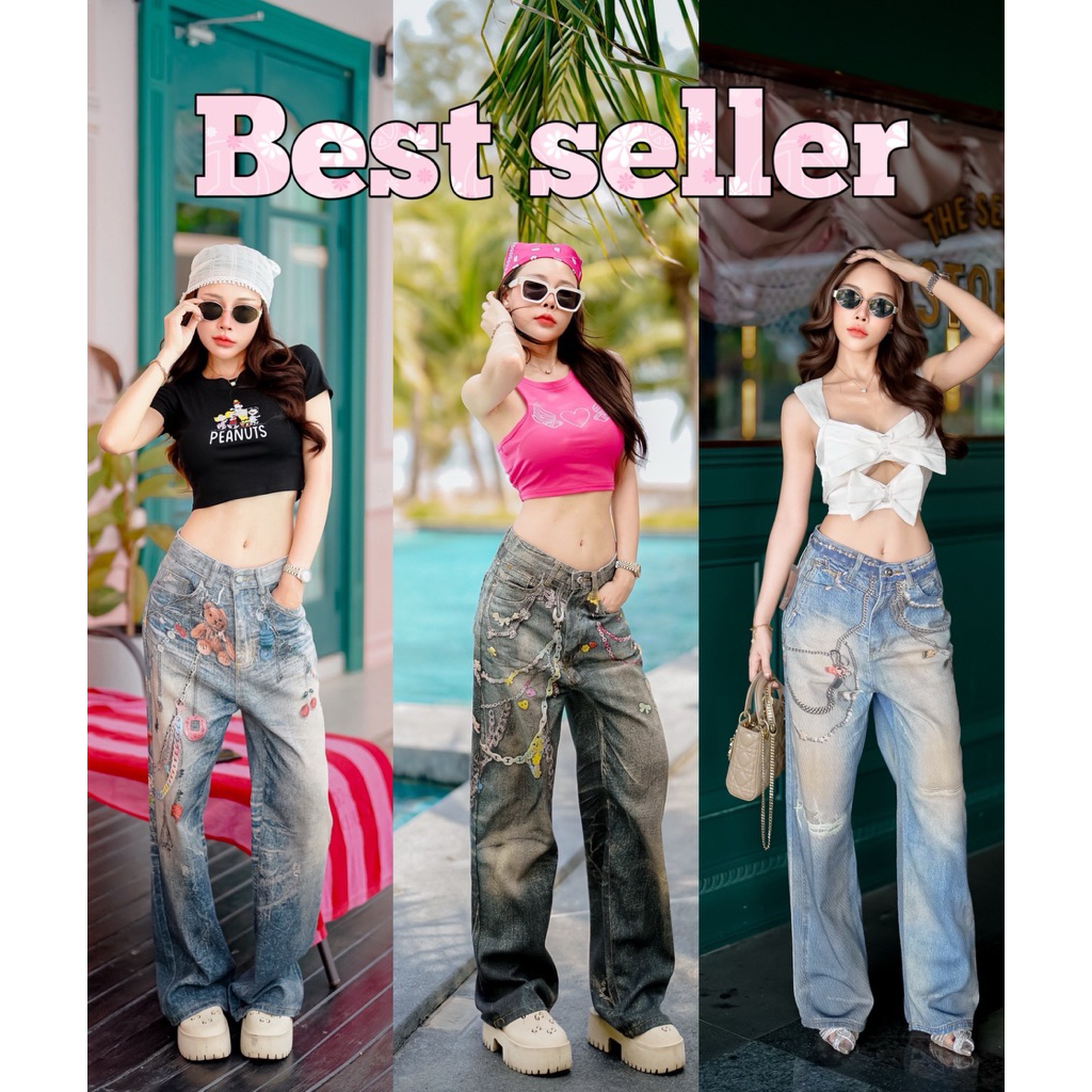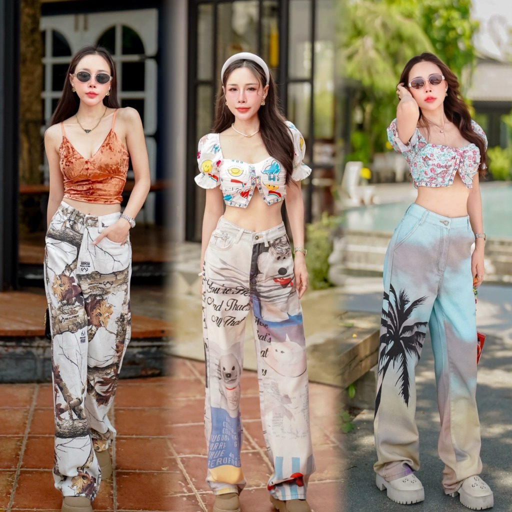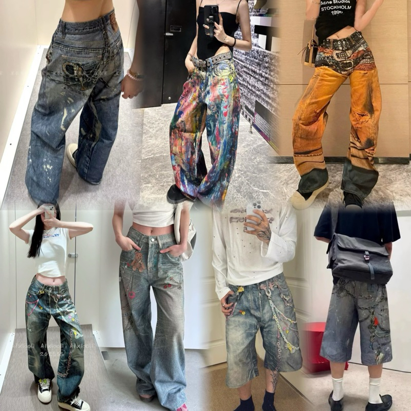 กางเกงยีนส์พิมพ์ลายกราฟฟิกเท่ๆงานตามหา กางเกงยีนส์ขาสั้น ขายาว ใส่ได้ทั้งผู้หญิง ผู้ชาย