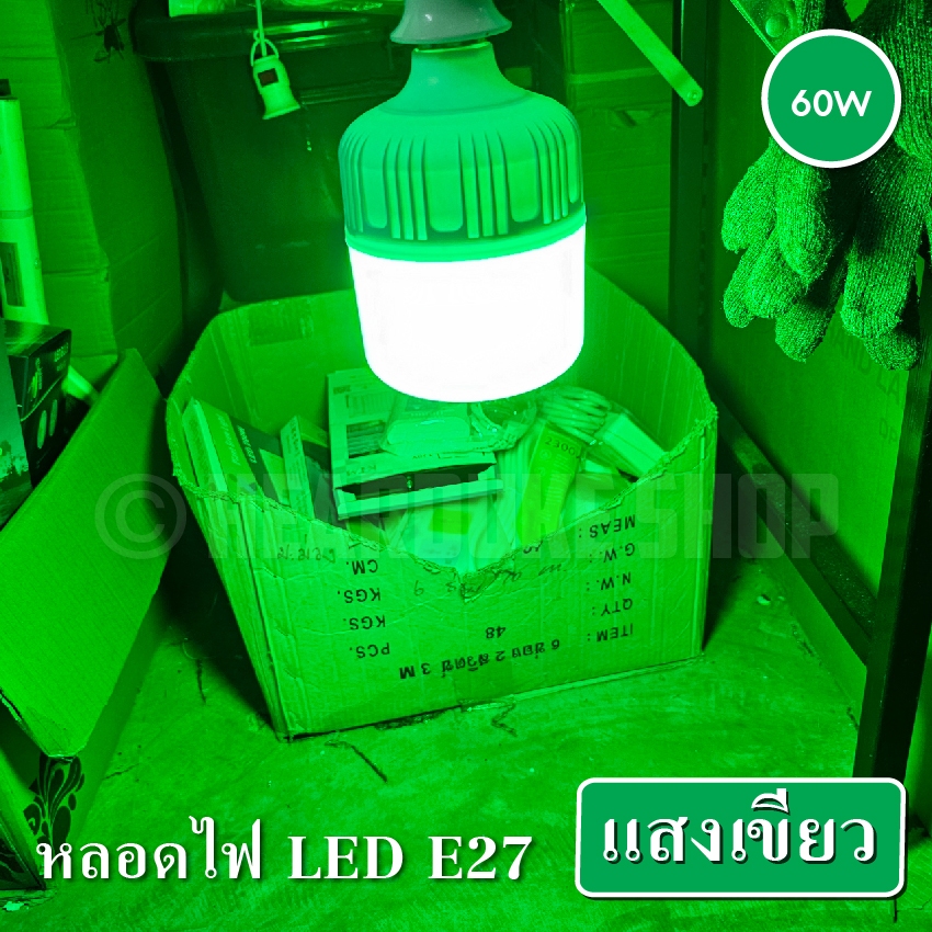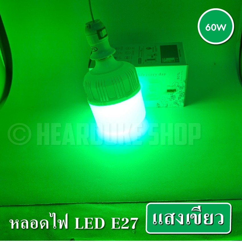 หลอดไฟแสงเขียว 60W มอก.หลอดเขียว หลอดปิงปอง LED ไฟล่อหมึก ไฟตกหมึก ขั้วเกลียว (ขั้ว E27)