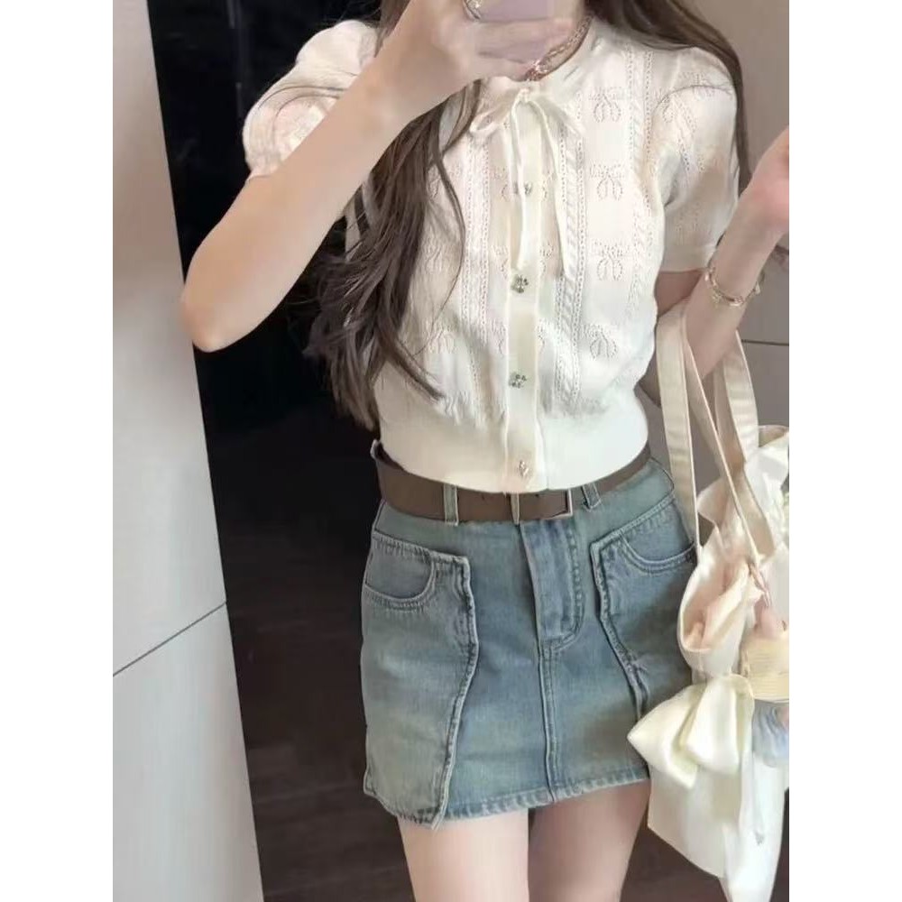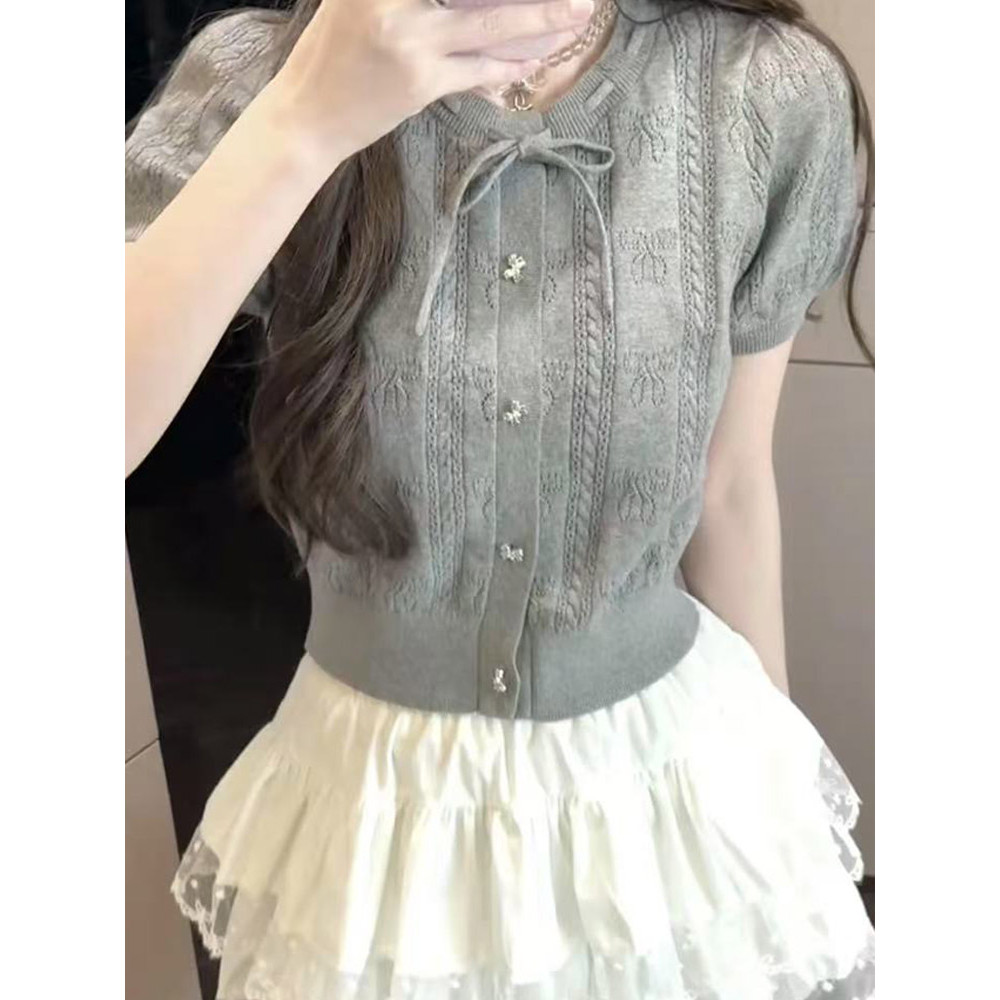 ฤดูร้อนผู้หญิงอเนกประสงค์กุทัณฑ์กลวงผ้าไหมน้ำแข็งแขนสั้น 250620