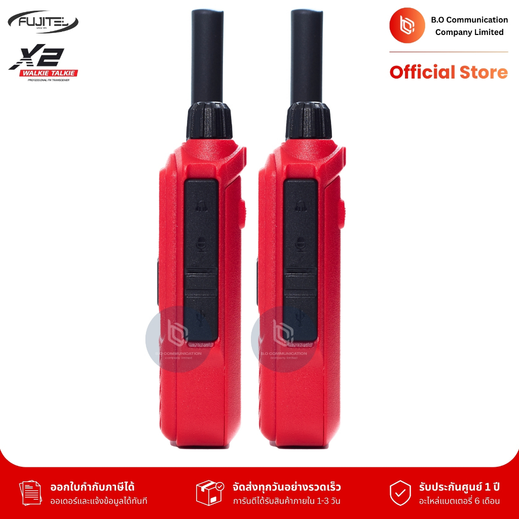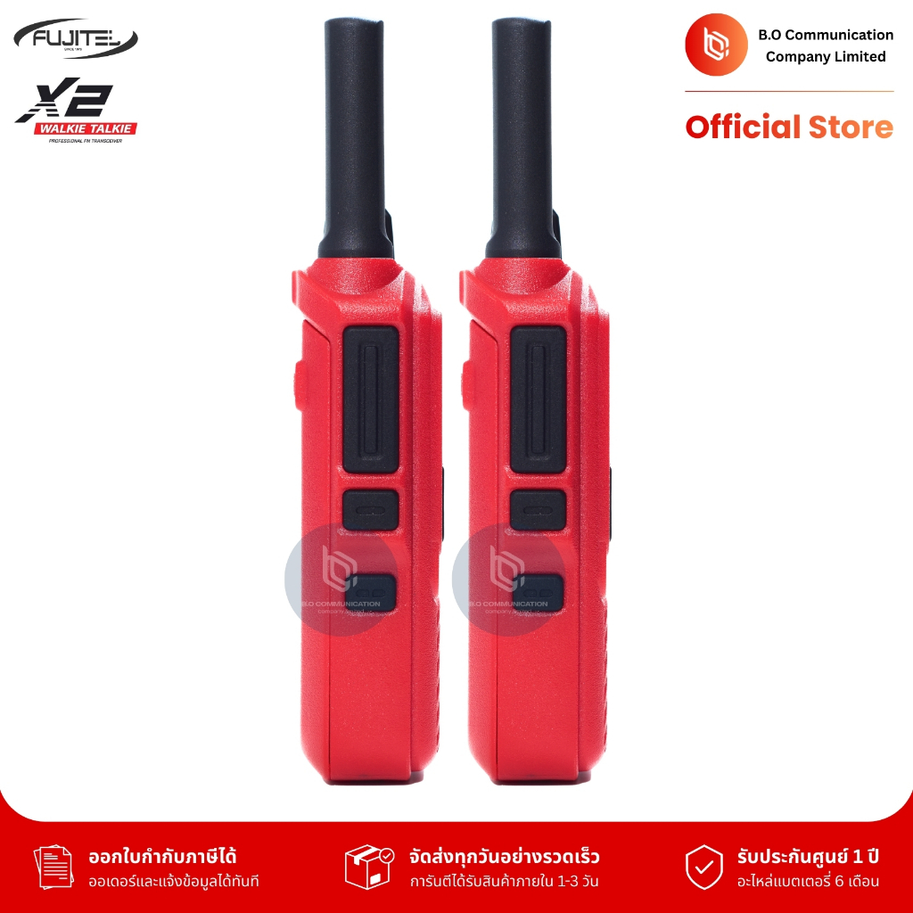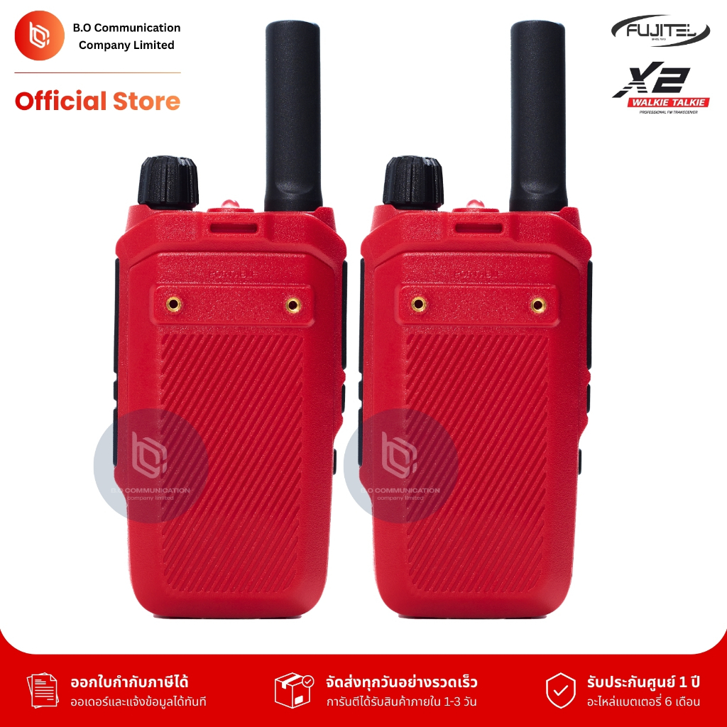 Fujitel X2 (แพคคู่) รับประกัน 1 ปี วิทยุสื่อสารกำลังส่ง 0.5W ถูกกฏหมายมีทะเบียนกสทช. คุยได้ 1-2 กม.