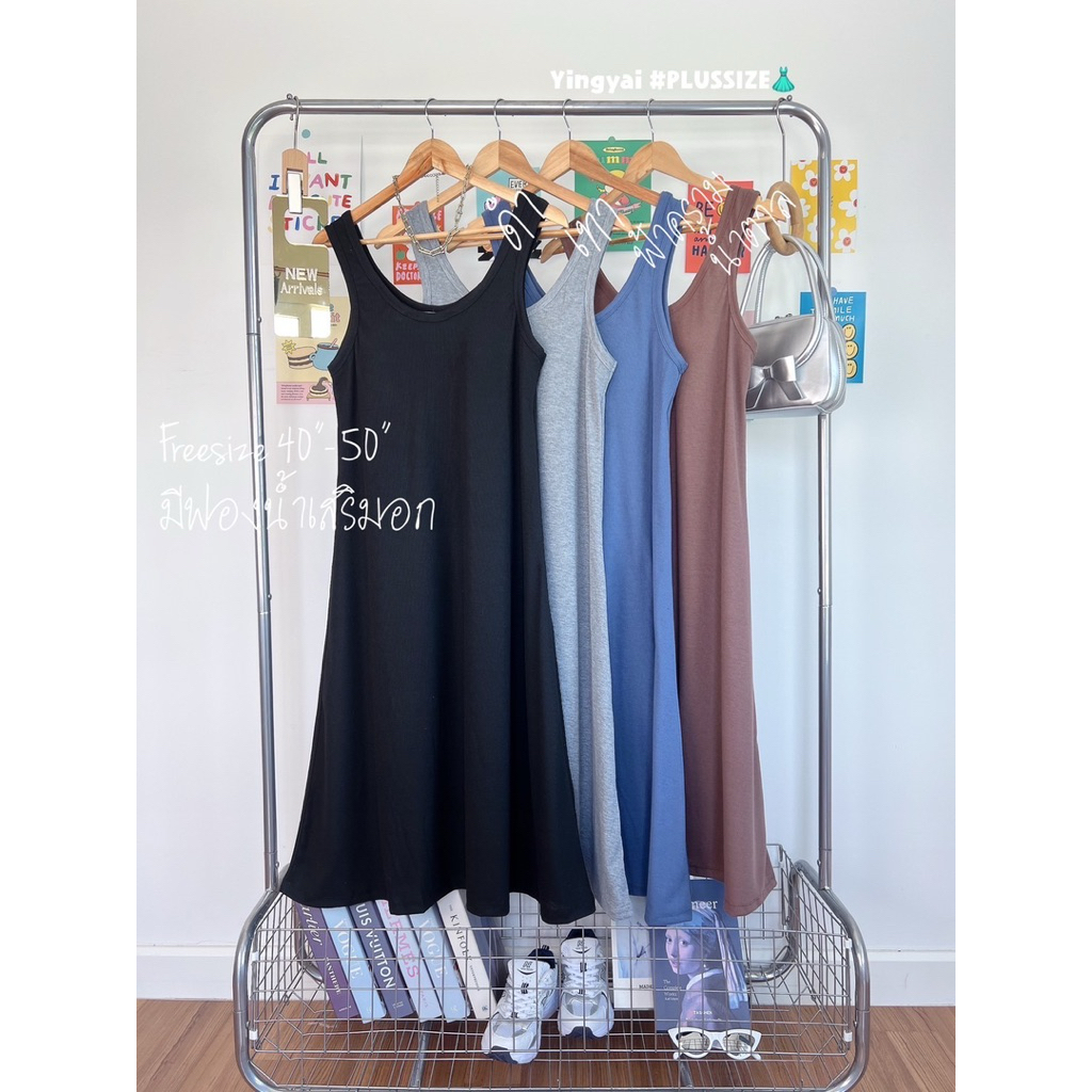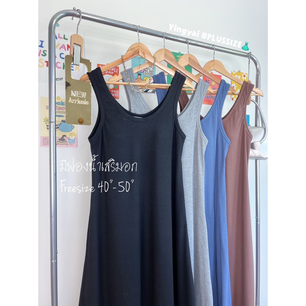 ชุดเดรสตัวยาว/เดรสสายเดี่ยว/เดรสกล้ามตัวยาว ผ้าร่องยืดได้เยอะ ไซส์ใหญ่ สาวอวบYY