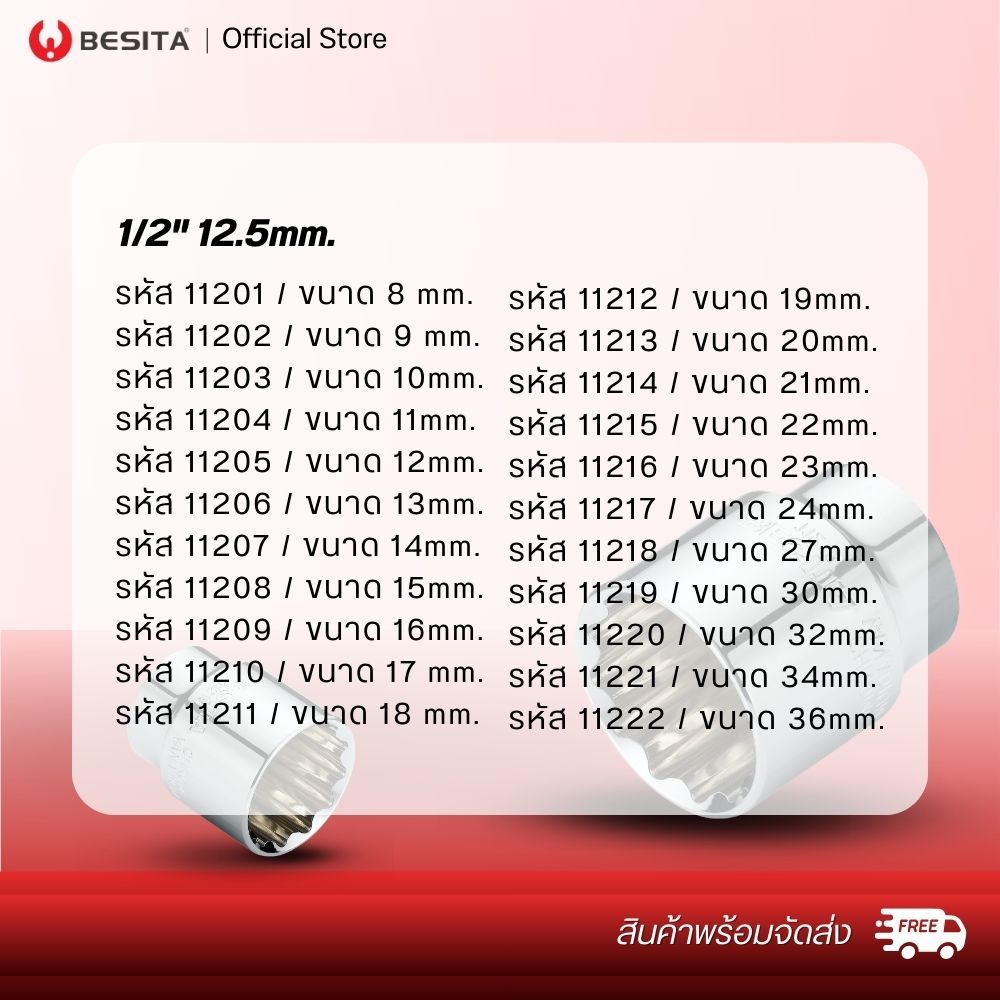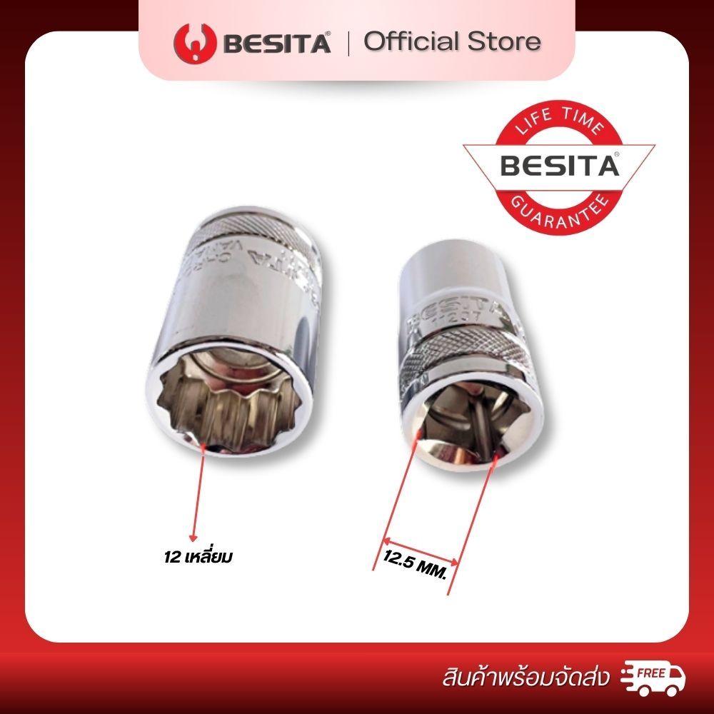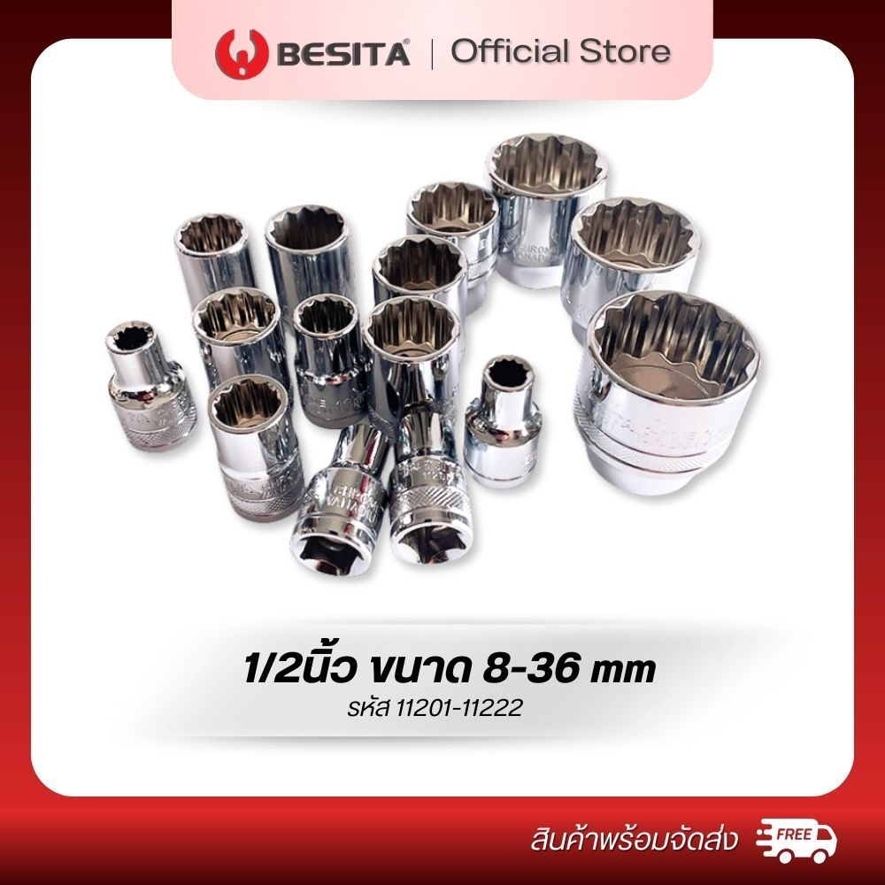 BESITA ลูกบล็อก 12 เหลี่ยม (สั้น) Metric 12-PT Socket แกน1/2นิ้ว 4หุน ขนาด30-36mm