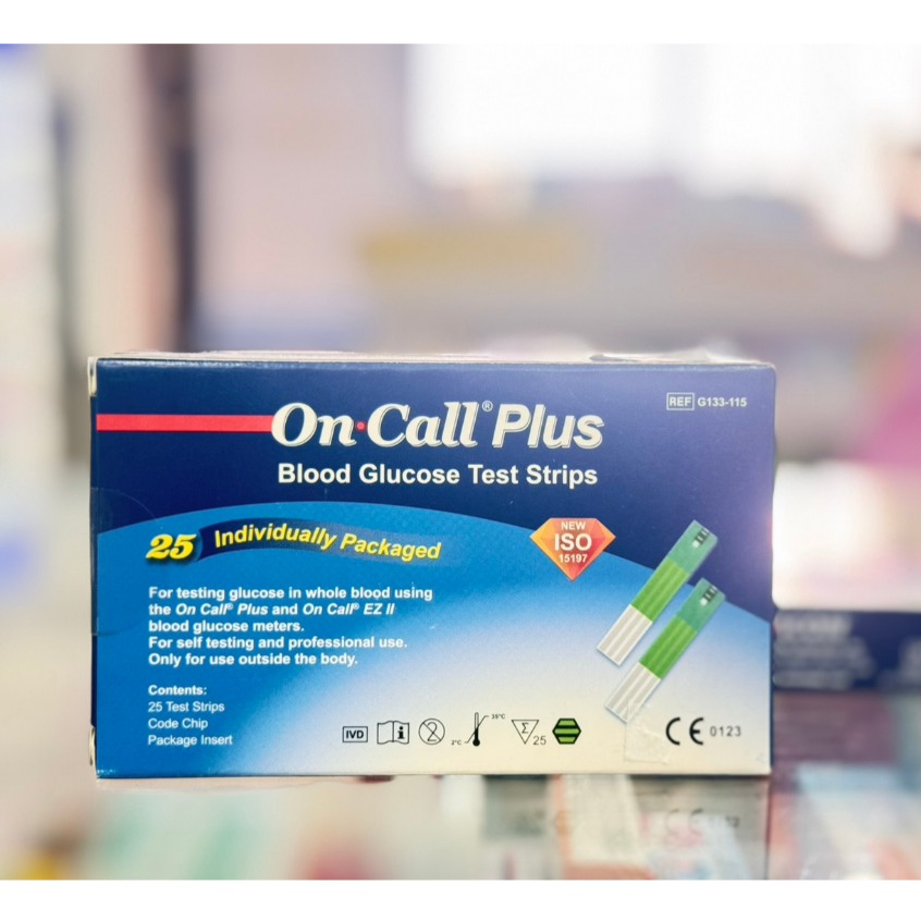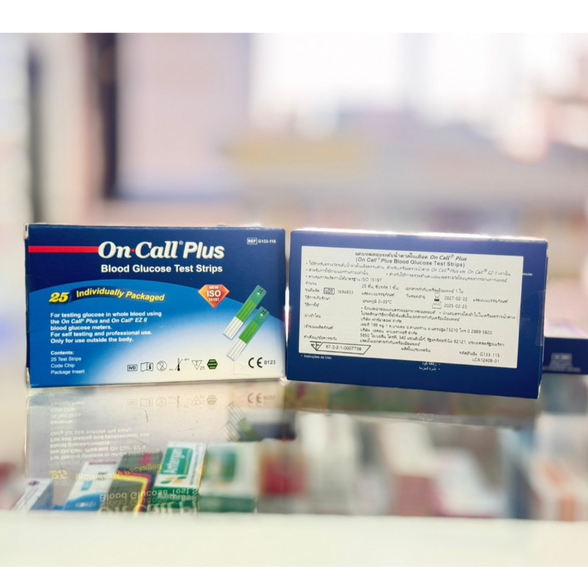 ON CALL PLUS เครื่องตรวจน้ำตาล ON CALL PLUS BLOOD/PLUS แผ่นตรวจวัดน้ำตาล (25 ชิ้น / กล่อง)
