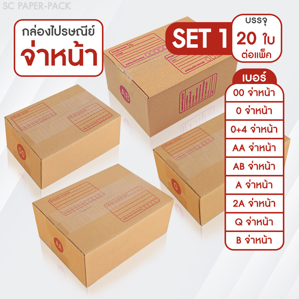 SC Paper-Pack กล่องไปรษณีย์ ฝาชน สีน้ำตาล จ่าหน้า 00,0,0+4,AB,AA,A,2A,Q,B (SET1)(แพ็ค 20)