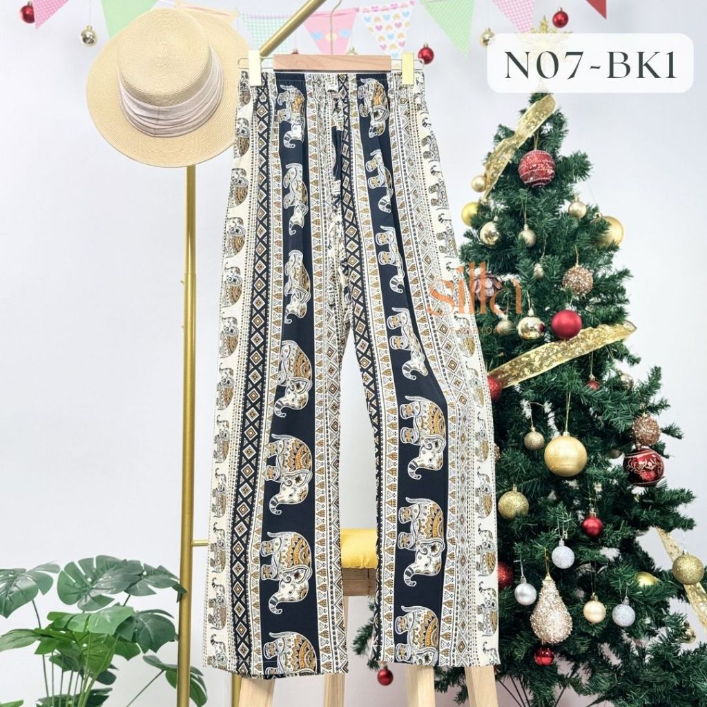 Silla กางเกงขายาว รุ่น Nature N07 ลายช้างจริงใจ เนื้อผ้าไหมอิตาลี ผ้าพริ้วนุ่ม ใส่สบาย ลายสวย