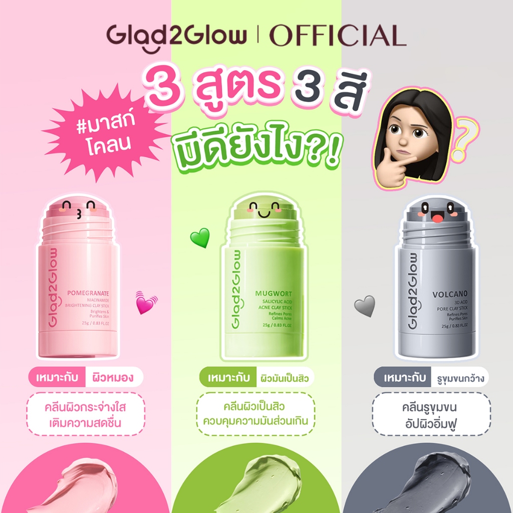 Glad2Glow Pomegranate Niacinamide Brightening Clay Stick มาร์คหน้า mask แผ่นมาร์คหน้า มาร์ค