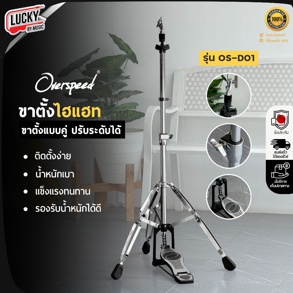 [โค้ดลด1000-฿🔥] ขาตั้งไฮแฮท Overspeed รุ่น OS-D01 / OS ขาไฮแฮท ขาตะเกียบคู่ โครเมียมทั้งชุด