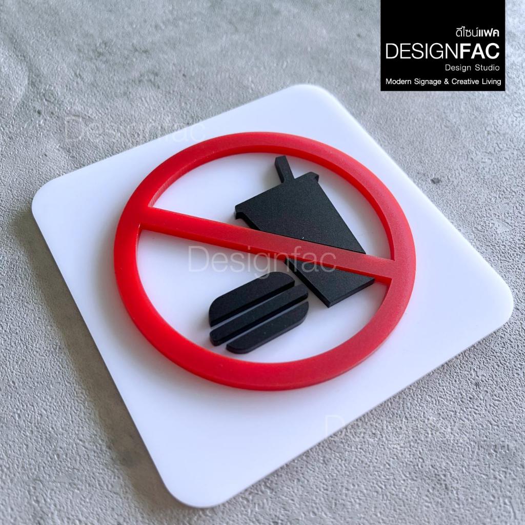 ป้ายสัญลักษณ์ ป้ายห้ามนำอาหารเข้ามา ป้ายห้ามรับประทาน อะคริลิคนูนสวย สไตล์โมเดิร์น มินิมอล,Designfac