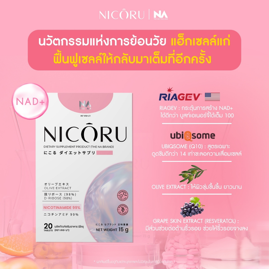 THE NA Nicoru NAD+ 3 กล่อง NMN เพิ่มNAD ผลัดผิวใส ต้านอนุมูลอิสระ ชะลอวัย บำรุงสมอง หลับลึก สดชื่น