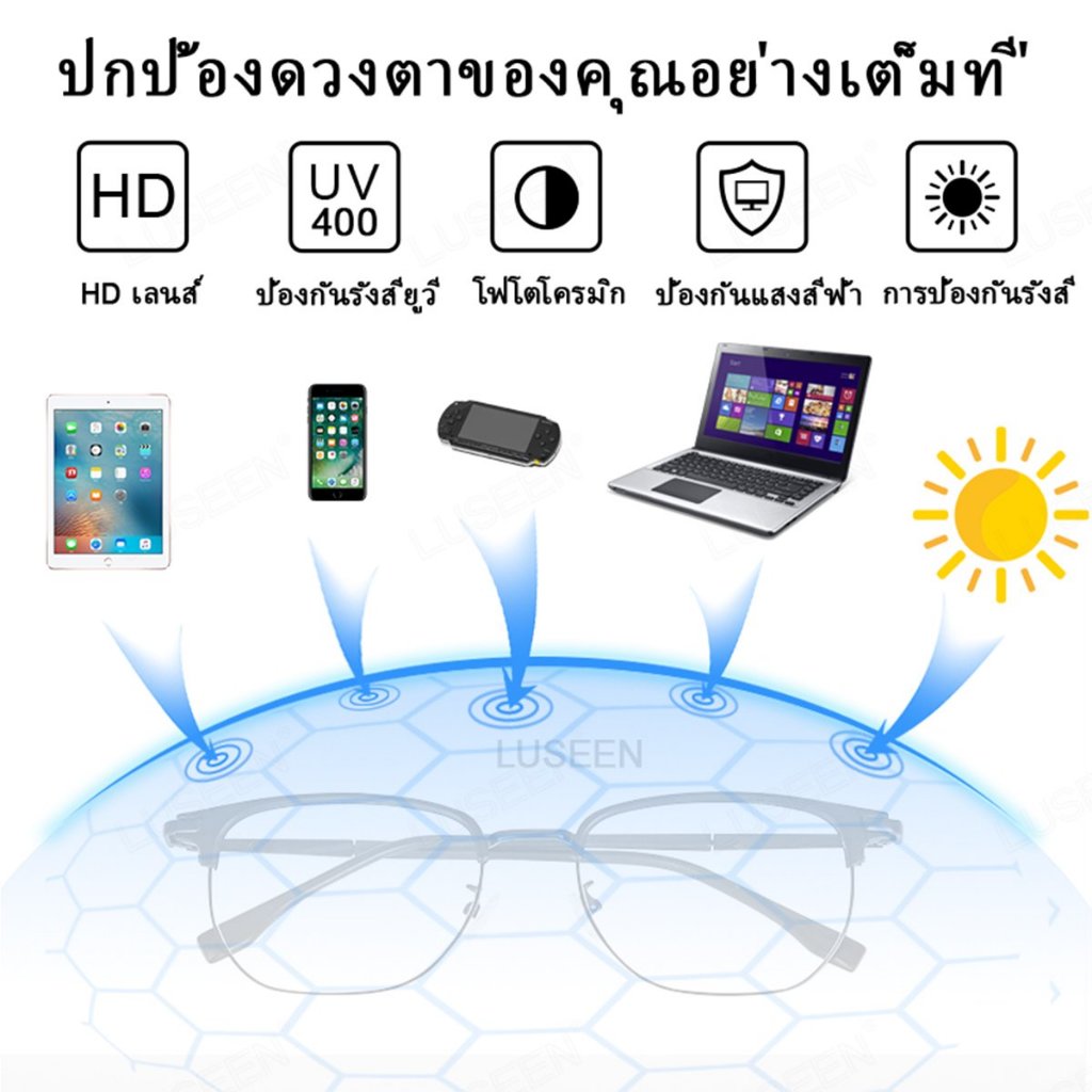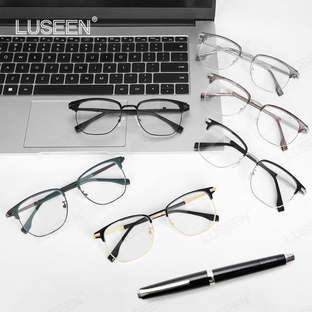 LUSEEN โฟโตโครมิก แว่นตาอัตโนมัติ โฟโตโครมิก สี่เหลี่ยมผืนผ้า กึ่งไร้ขอบ สําหรับผู้ชายและผู้หญิง แว่นตา AG2270