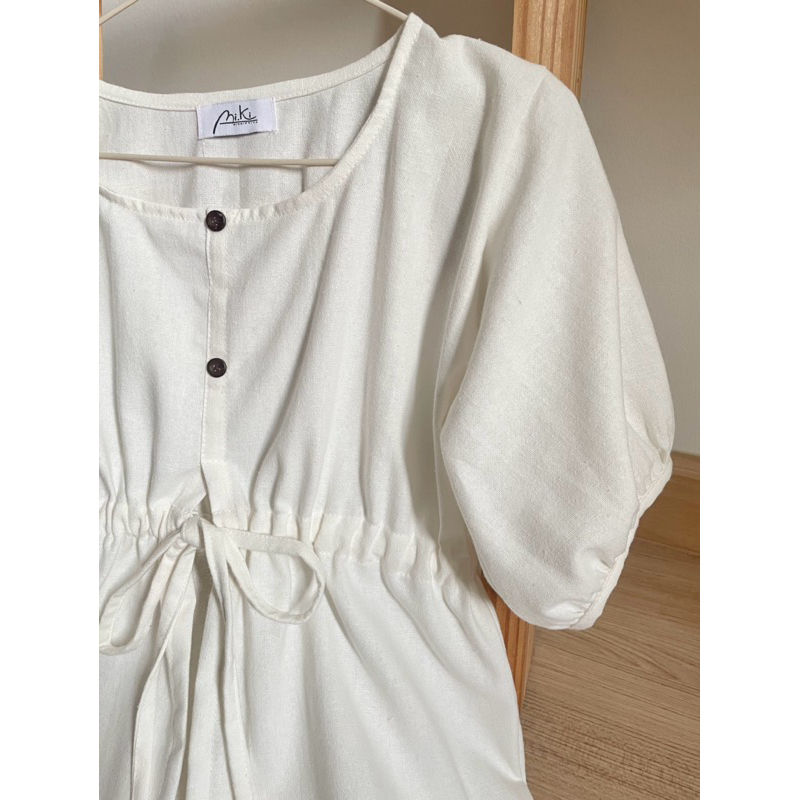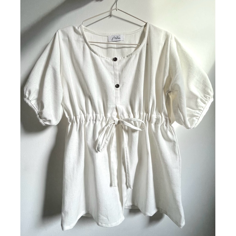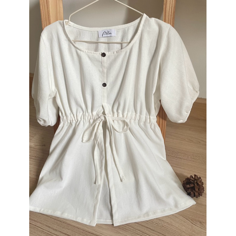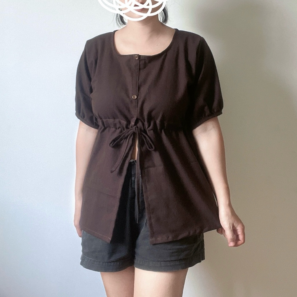 เสื้อเอวผูกโบแต่งกระดุมแขนตุ๊กตาผ้าฝ้ายฟอกนุ่ม