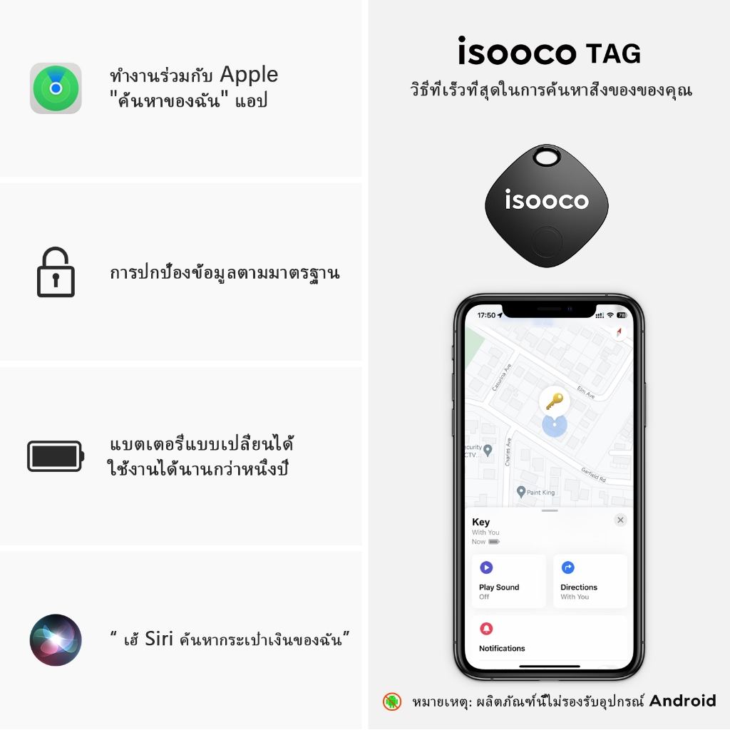 ISOOCO GPS Tracker ตัวติดตามบลูทูธ ตัวค้นหากุญแจและตัวระบุตําแหน่งสัตว์เลี้ยงสําหรับคีย์, กระเป๋า, ฯลฯ เข้ากันได้กับ iOS