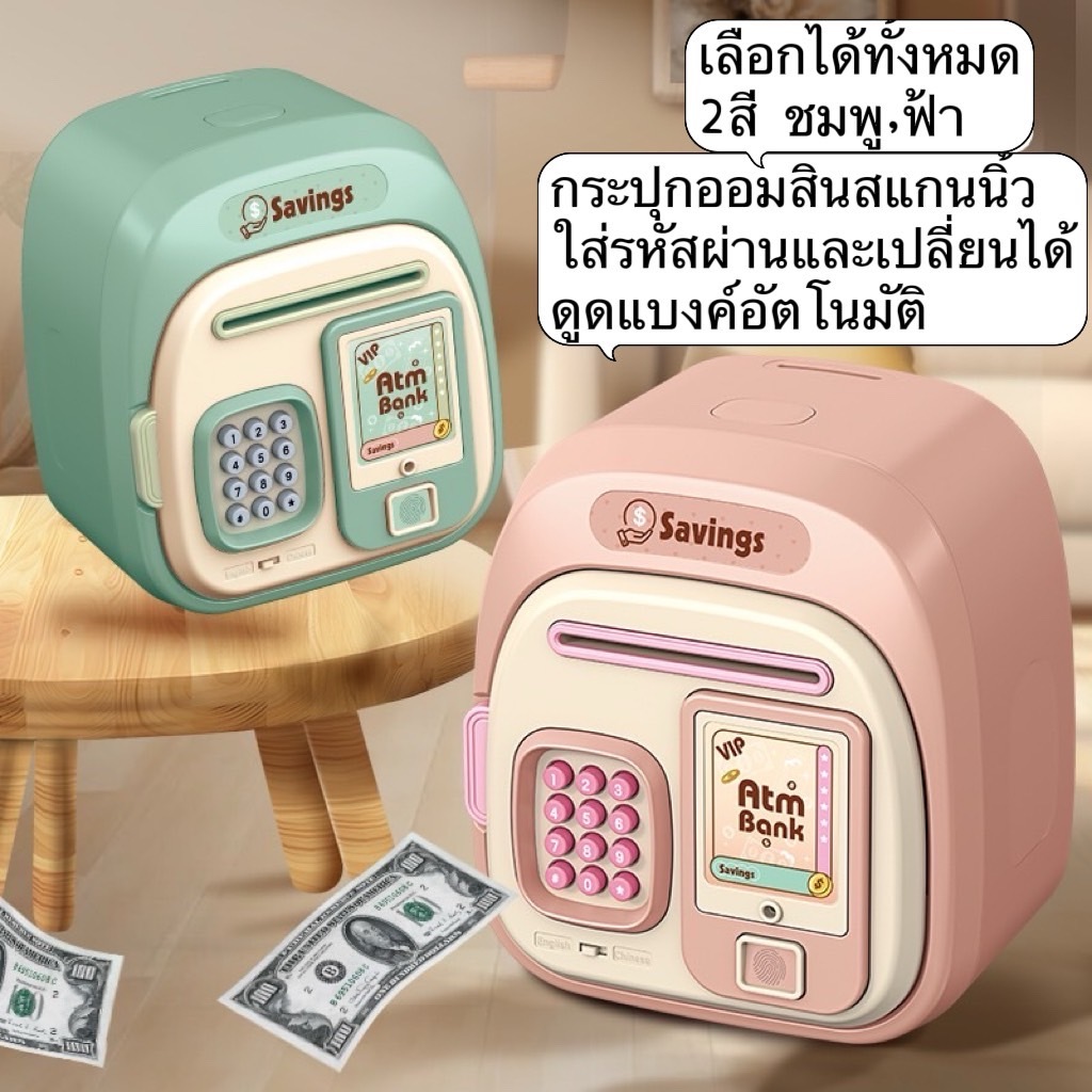 ATM กระปุกออมสินเลือกสีได้ มีเพลง หยอดเหรียญได้ เครื่องดูดแบงค์อัตโนมัติ ของเล่นเด็ก