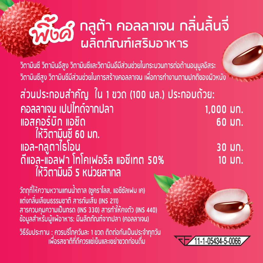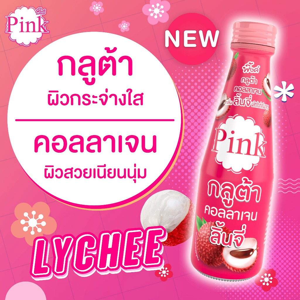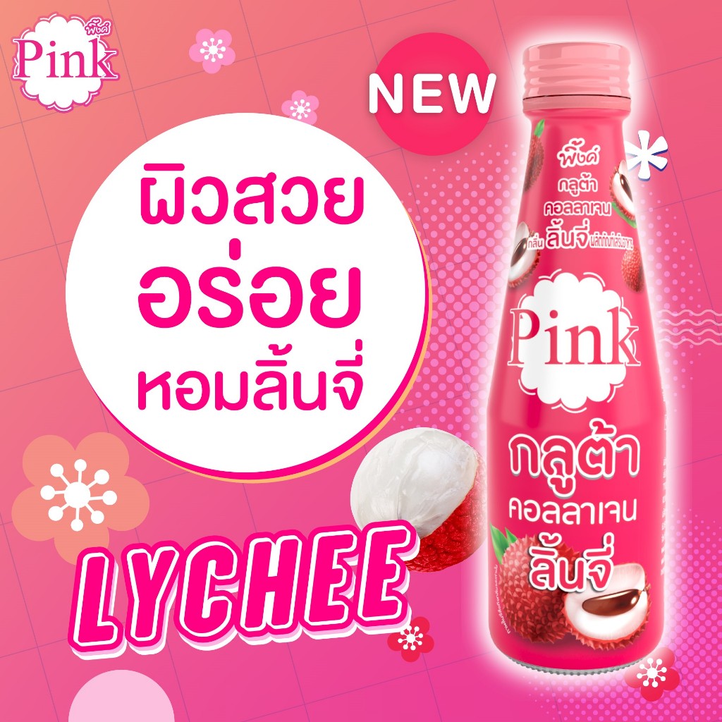 [ 12 ขวด ] พิ้งค์ กลูต้า คอลลาเจน กลิ่นลิ้นจี่ 100 มล.