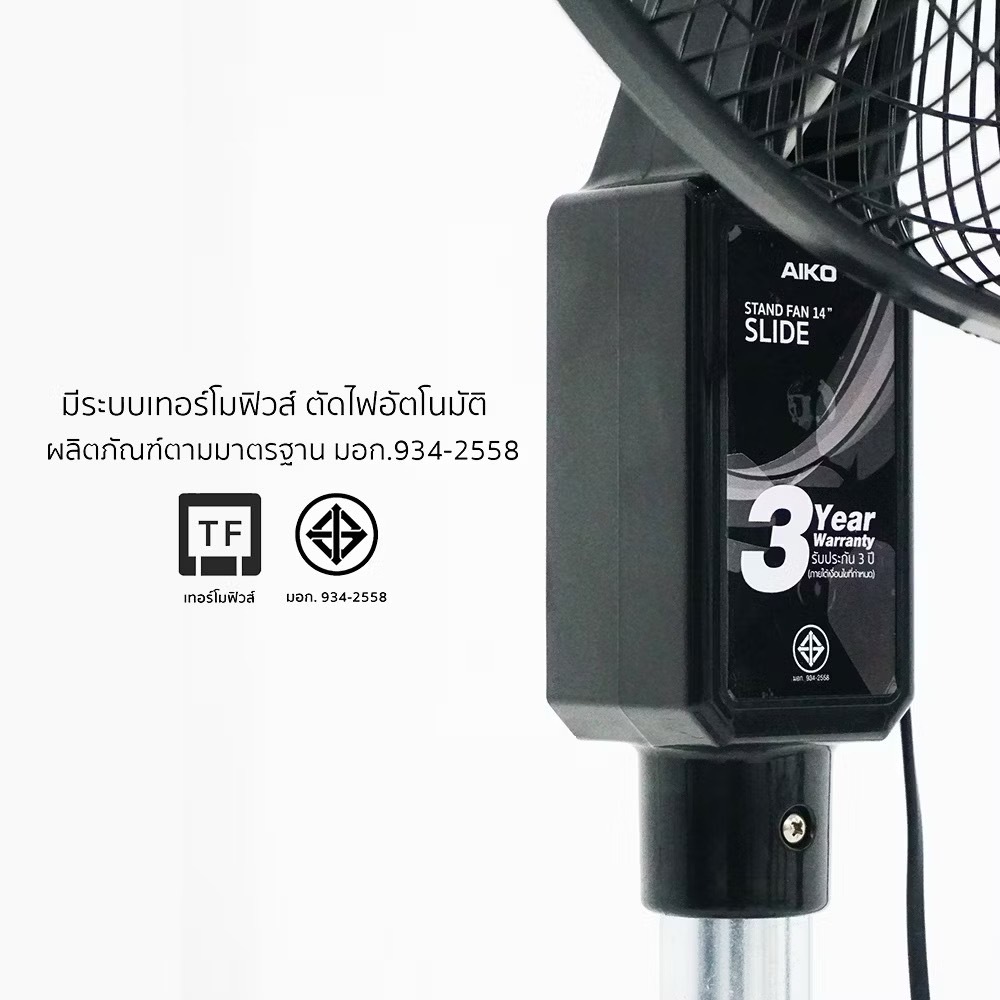 AIKO พัดลมสไลด์ 14 นิ้ว รุ่น AK-D402 พัดลมสไลด์ใบพัดอลูมิเนียม พัดลมส่าย พัดลมก้มเงย