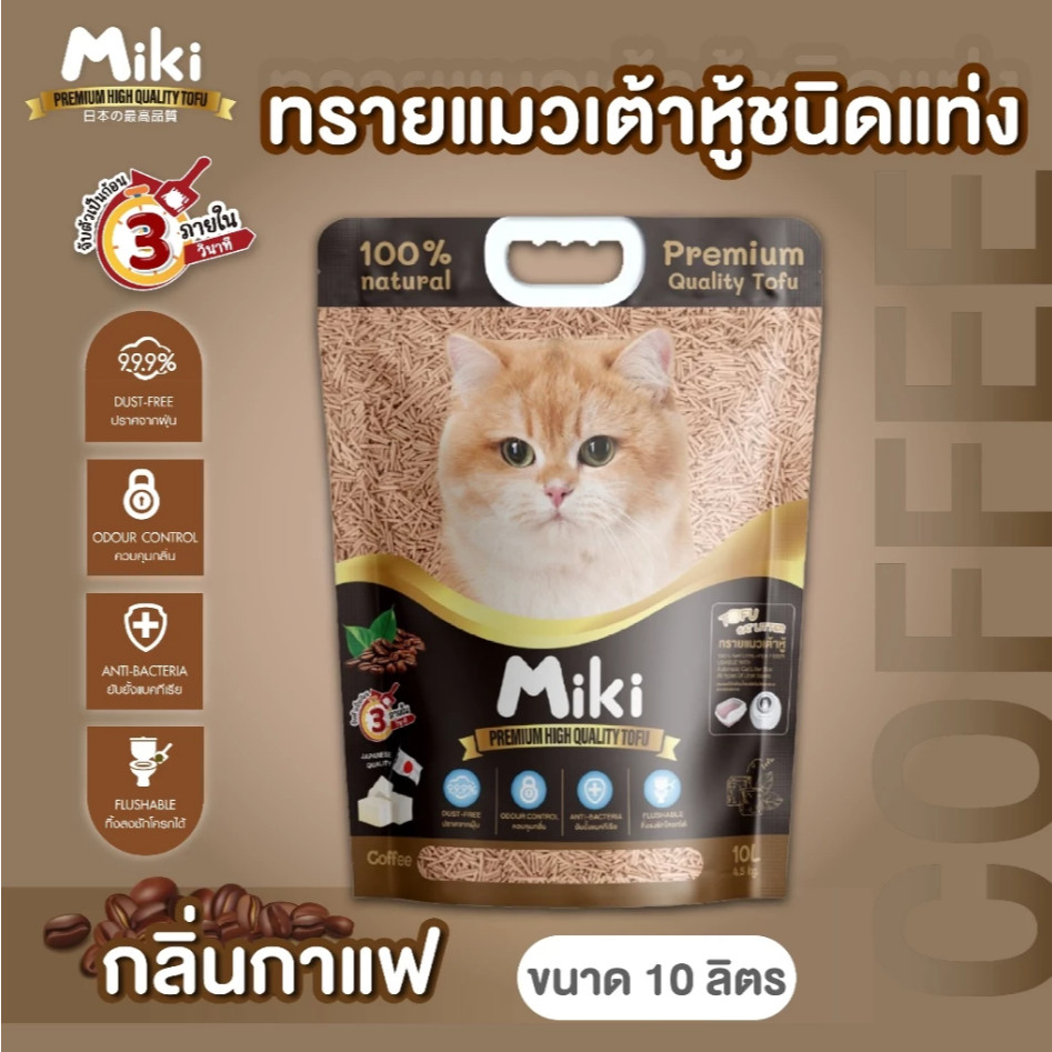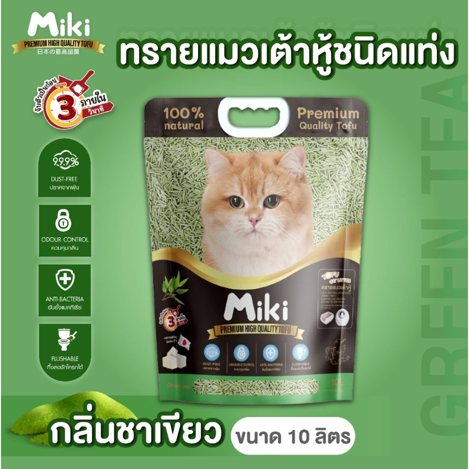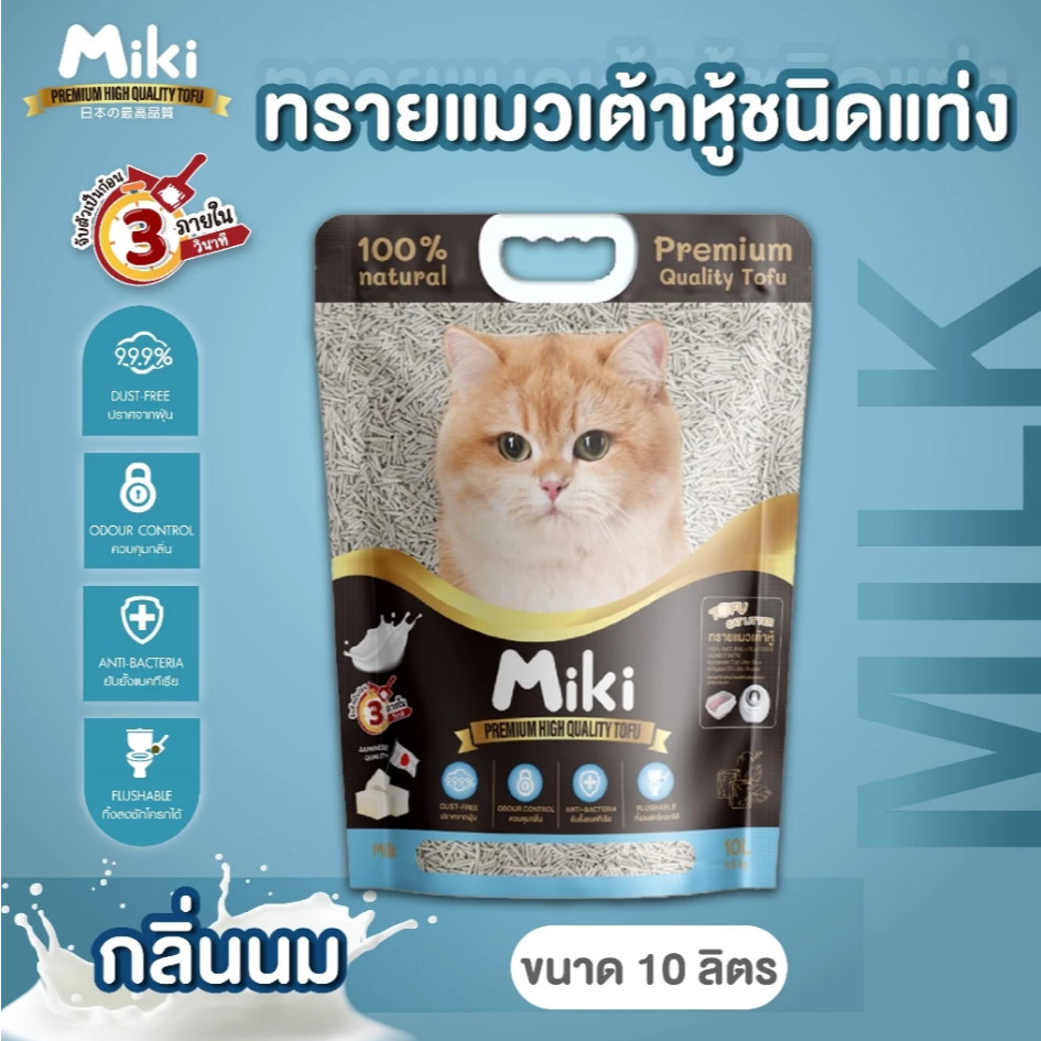 MiKi ทรายแมวเต้าหู้ แบบแท่ง 10 ลิตร ไร้ฝุ่น เก็บกลิ่นดี ทิ้งลงชักโครกได้ เกรดพรีเมี่ยม มิกิทรายเต้าหู้ กลิ่นหอมนาน