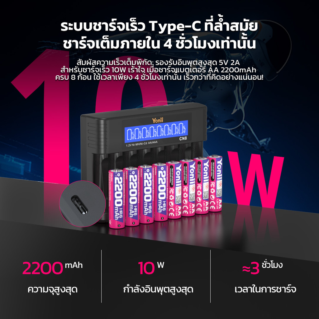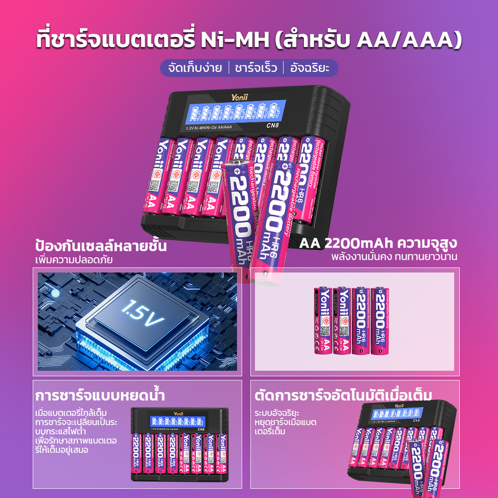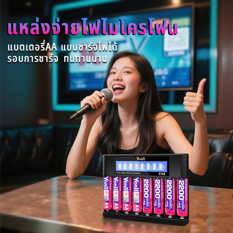 Yonii ถ่านชาร์จ AA/AAA+ที่ชาร์จแบต ใช้ได้กับ ไมโครโฟน ของเล่น คาราโอเกะ ไมค์ไร้สาย ถ่านชาร์จ 2A/3A