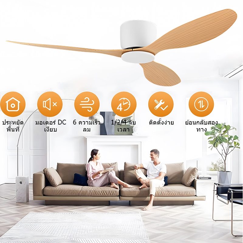 GOGEOUS พัดลมเพดาน 52 นิ้ว ควบคุมรีโมท 6 ระดับความเร็ว ไร้เสียงรบกวน DC มอเตอร์ทองแดงอายุการใช้งานยาวนาน ceiling fan