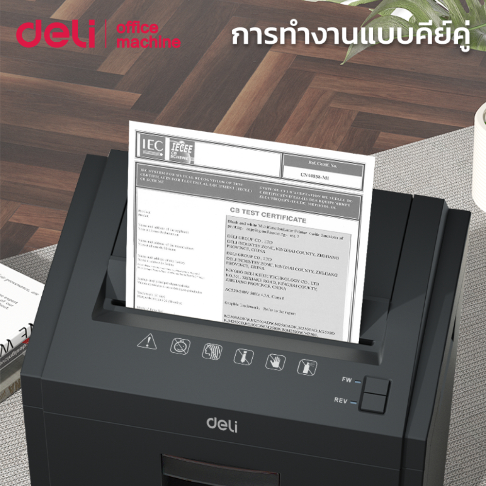 Deli เครื่องย่อยเอกสาร เครื่องทำลาย CD/บัตร/A4 23L Auto ย่อยละเอียด 2x12มม เสียงเบา Paper shredder