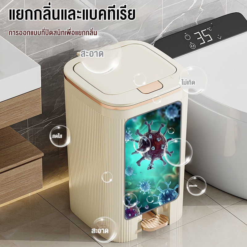 ถังขยะใหญ่ ถังขยะ ถังขยะใช้เท้าเปิด ถังขยะ10L/15L ถังขยะแบบกดถังขยะสีขาว ถังขยะในห้องน้ํา รุ่นอัพเกรด