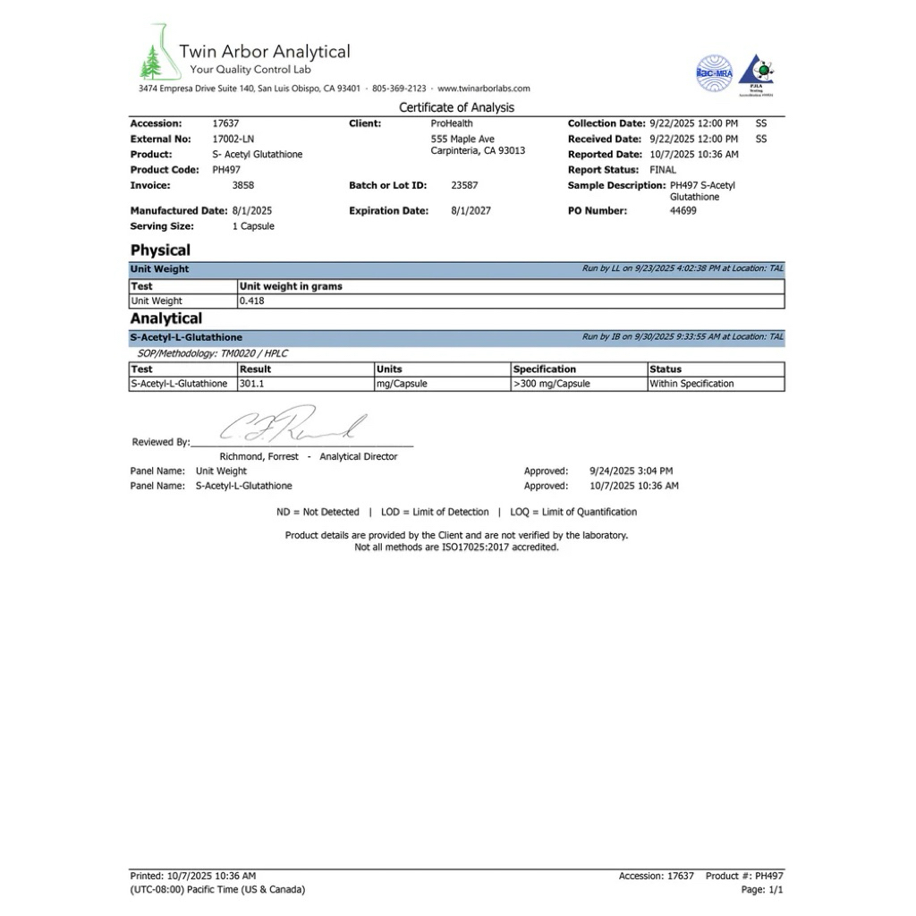 S-Acetyl Glutathione (60 แคปซูล) ProHealth แท้จาก USA