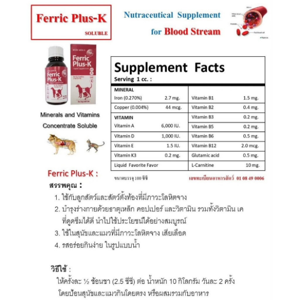 [สินค้าขายดี] Ferric Plus K 100ml. เฟอร์ริคพลัสเค อาหารเสริมแร่ธาติ วิตามิน สำหรับสุนัขและแมว