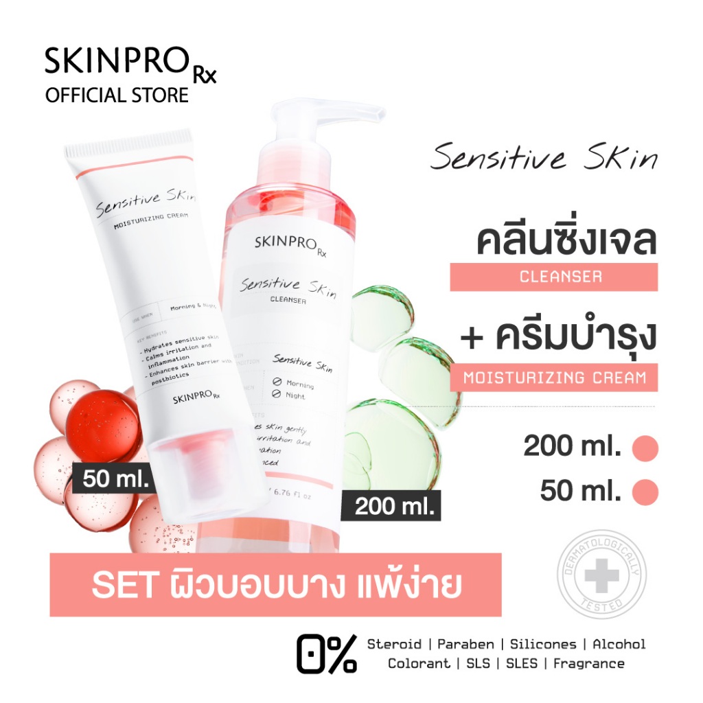 SKINPRO Rx SET ผิวบอบบางแพ้ง่าย - Sensitive Skin Cleanser 200 ml. & Sensitive Skin Moisturizing Cream 50 ml.