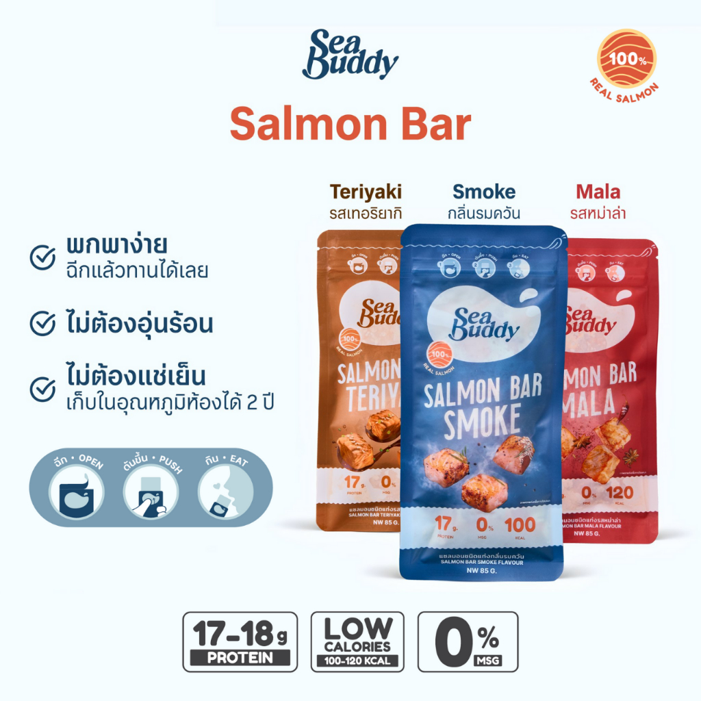 (หมดอายุ 8 พ.ค.) Sea Buddy Salmon Bar ซีบัดดี้ แซลมอนบาร์ ปรุงสุกพร้อมทาน (12ซอง) โปรตีนสูง โอเมก้า3 อาหารว่าง ปลาแซลมอน