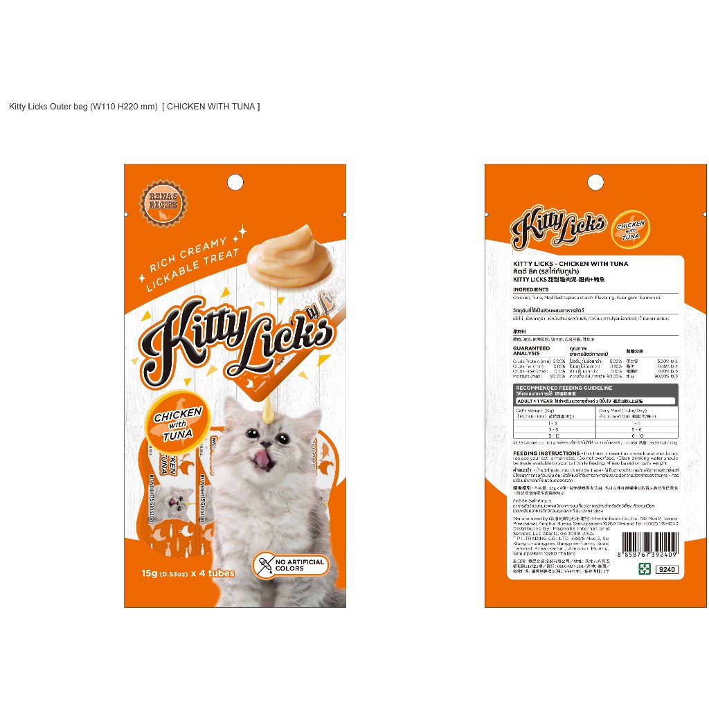 9240 Kitty Licks / คิตตี้ ลิค ขนมครีมแมวเลีย รสไก่ กับ ทูน่า (แพค4ชิ้น) ***4ถุง 100 บาท***