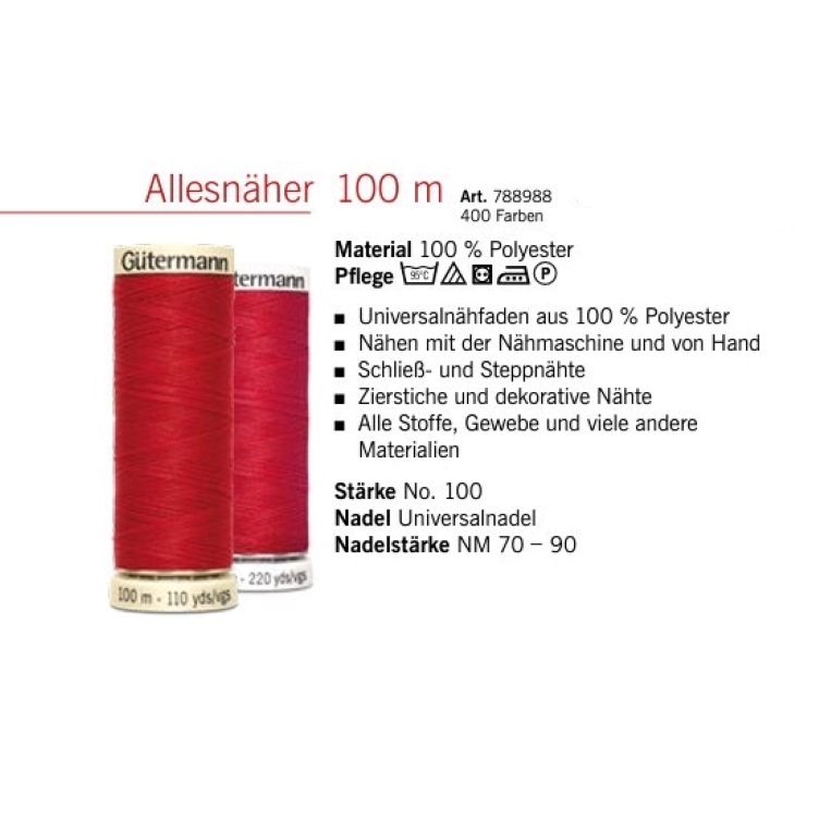 Gutermann Sew-all Thread ด้ายเย็บอเนกประสงค์ Polyester 100% (100m) Made in Germany