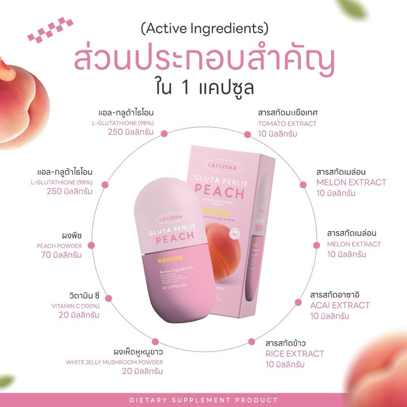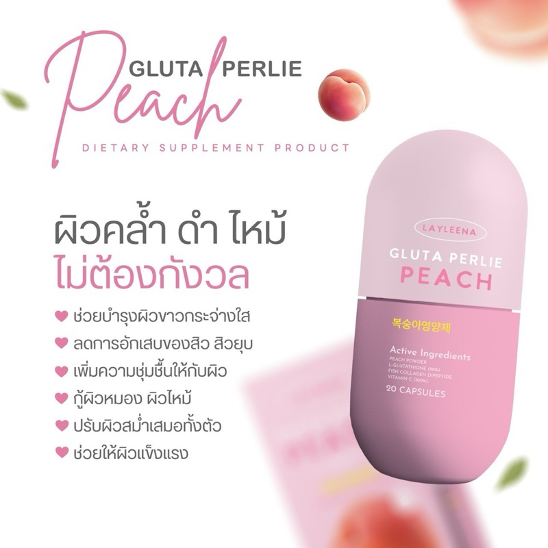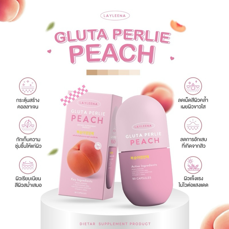 [ส่งฟรี]Layleena 🎀🇰🇷: กลูต้าพีชเกาหลี ของแท้ แบรนด์เลย์ลีน่า กลูต้าพีช ผิวขาว ตัวดัง ลดสิว ผิวออร่า