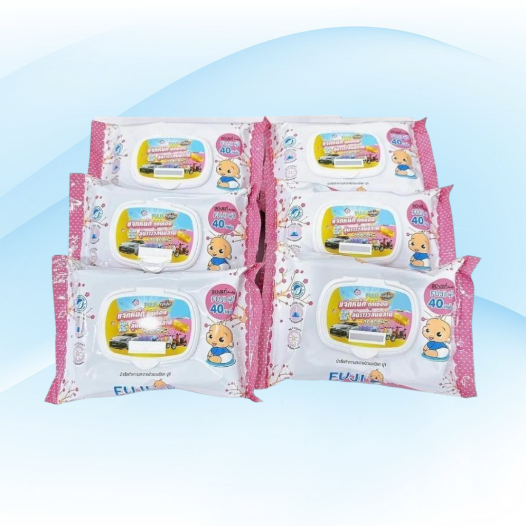[เซท 6 ห่อ] Fuji ฟูจิ กระดาษทิชชู่เปียก ห่อ 40 แผ่น สูตรอ่อนโยน เนื้อผ้าแบบพิเศษ