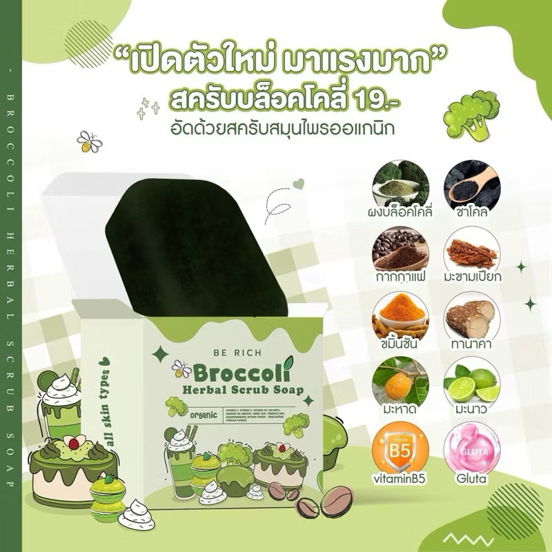 [10 ก้อน] สครับบล็อคโคลี่ สบู่บีริช Broccoli Herbal Scrub Soapสครับผิวใส เรียบเนียน 35g(เซ็ต10ก้อน)