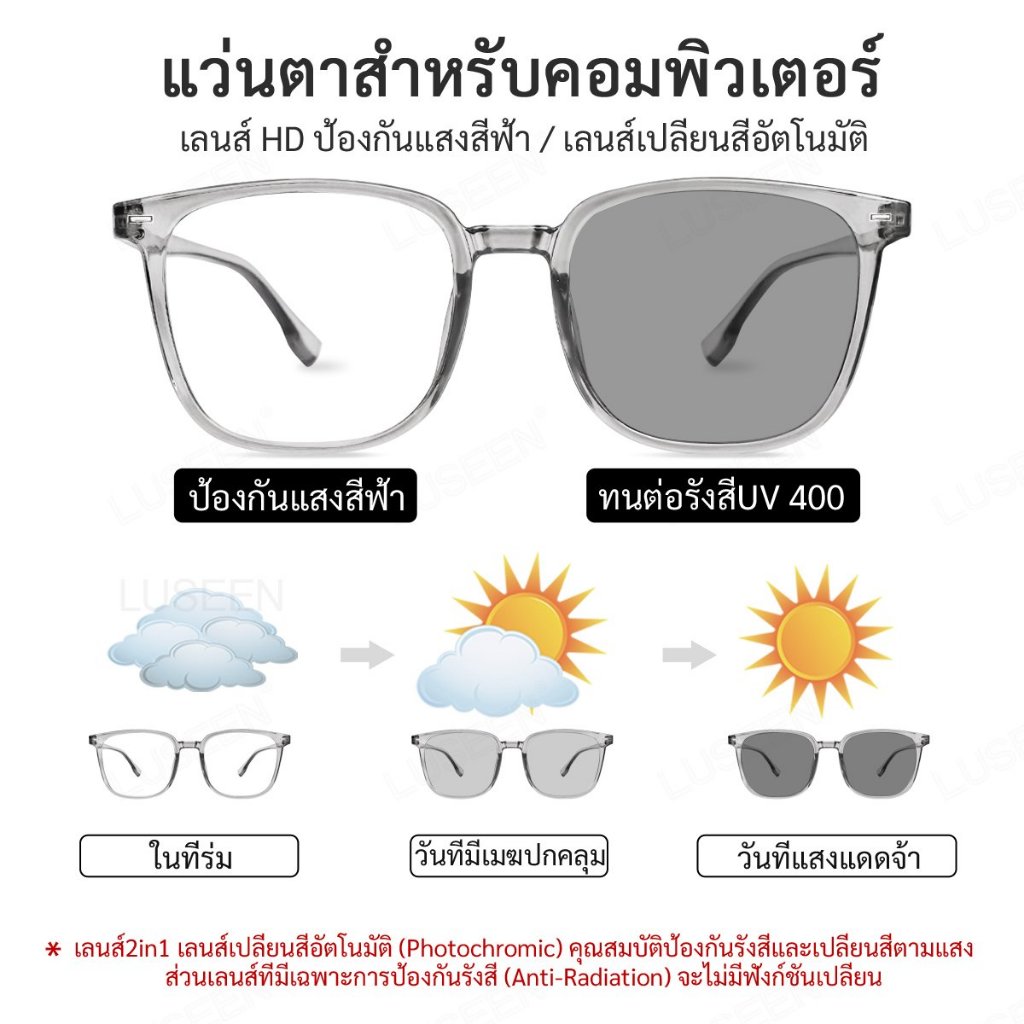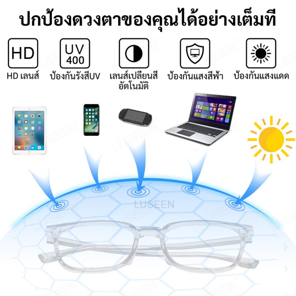 LUSEEN แว่นตา แว่นตาเท่ๆ แว่นกรองแสงเลนส์ออโต้ แว่นตาแฟชั่น แว่นกรองแสงสีฟ้าและ uv แว่นตากันแดด AG2279