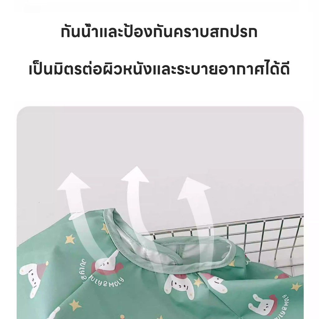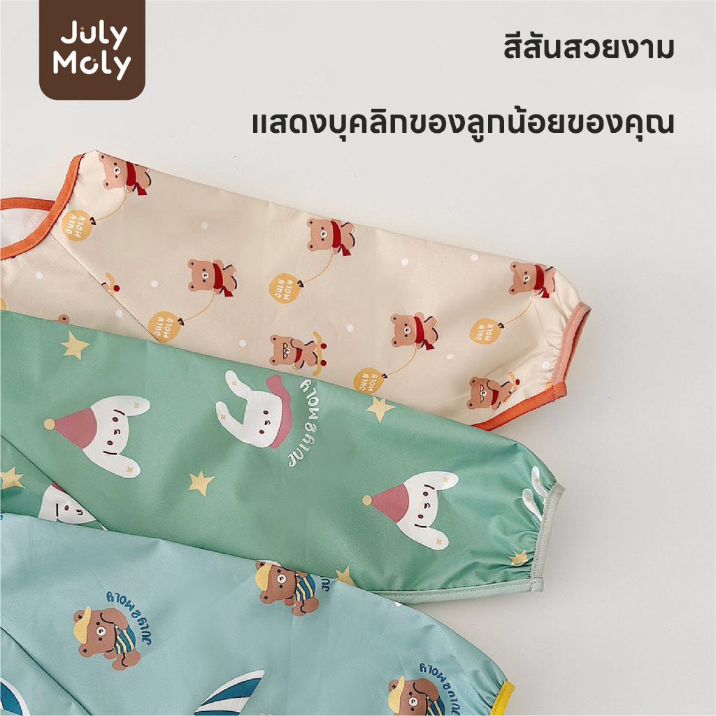 July Moly แขนยาว เสื้อกันเปื้อนเด็ก มีกระเป๋าหน้า อายุ 0-3 ปี กันน้ำ กันน้ำมัน กันคราบ ใส่ง่าย
