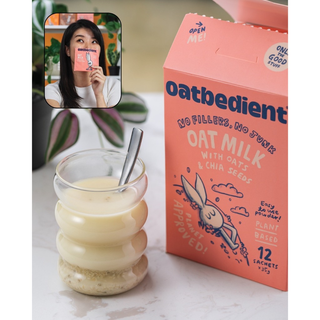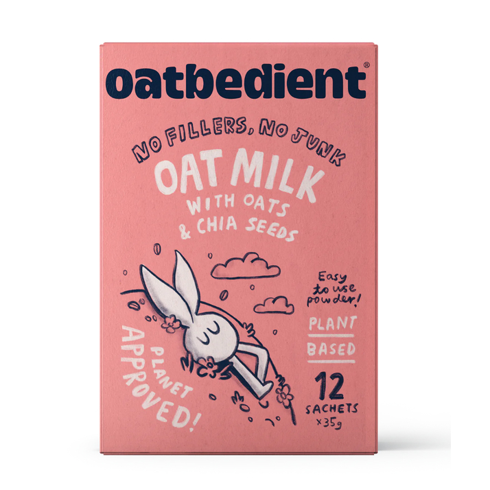 Oatbedient Oat Milk with Oats & Chia Seeds 336g ผงนมข้าวโอ๊ตสำเร็จรูป รสเมล็ดเจีย 12x35g