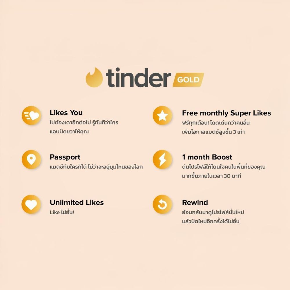 Tinder Gold - 12 เดือน เห็นคนไลก์ก่อน | Top Picks ทุกวัน