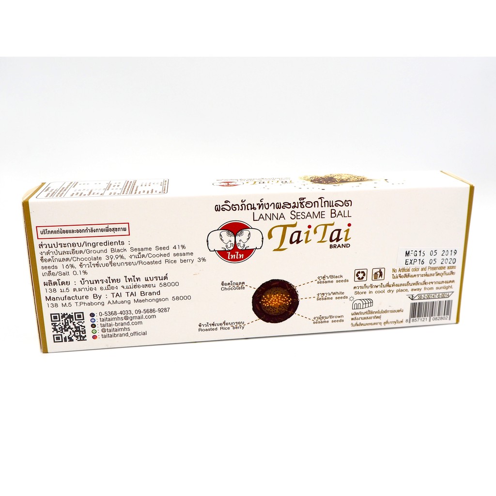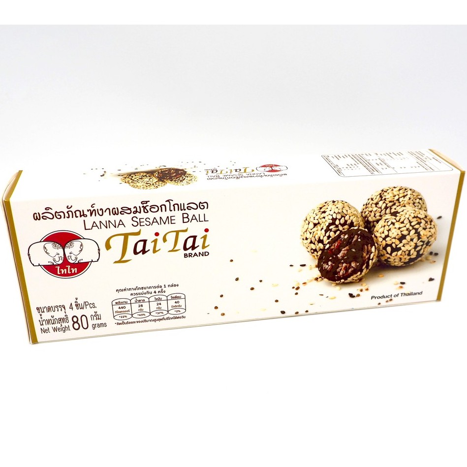 ขนมงา ผสมช็อคโกแลต (ตราไทไทแบรนด์) Lanna Sesame Ball ขนมธัญพืช,ดาร์คช็อคโกแลต lowsugar